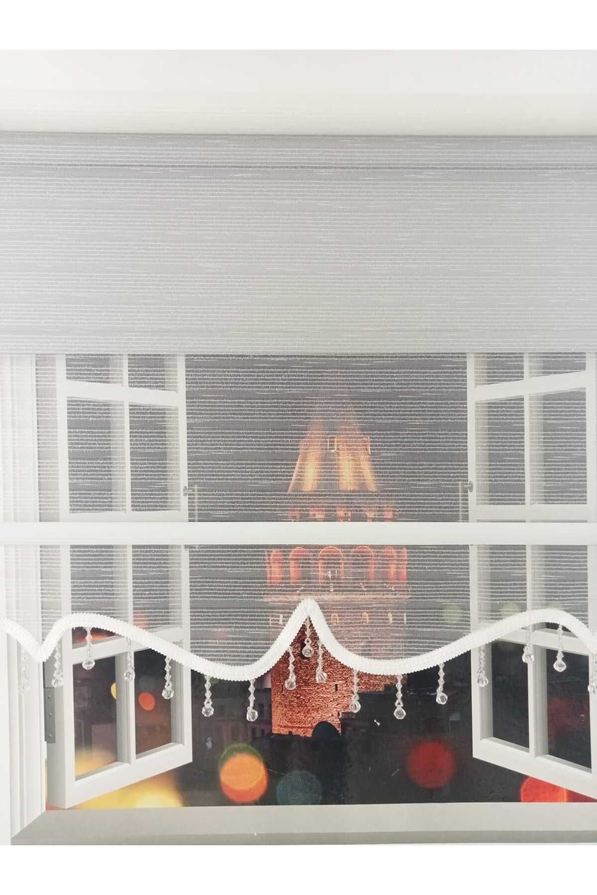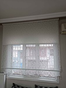 Çift Mekanizmalı Sarmaşık Desen Boncuklu Tül Stor Perde Beyaz Çift Mekanizmalı Sarmaşık Desen Boncuklu Tül Stor Perde Beyaz ÇŞ2022 270 x 260