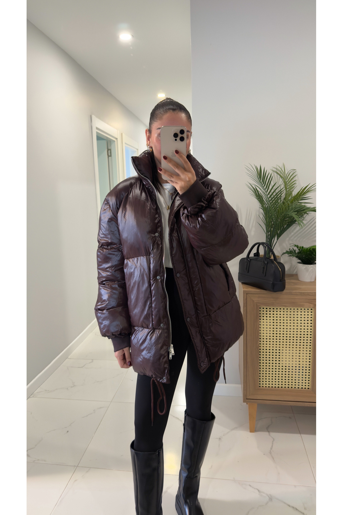 Kahverengi Şişme Deri Mont Kahverengi Şişme Deri Mont mnt-ays-1 L