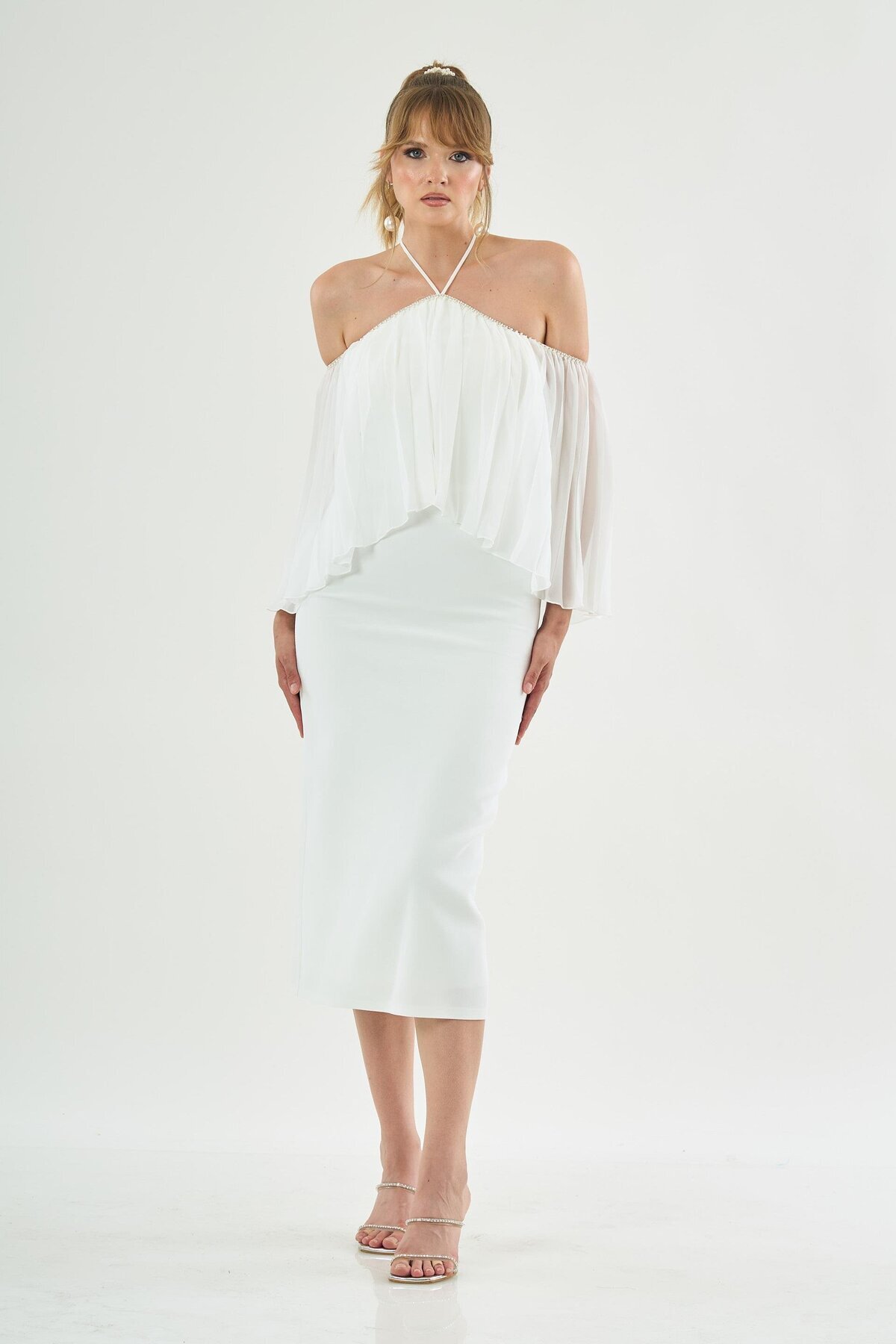 Ekru Tül Büzgülü Uzun Kollu Midi Boy Nikah Abiye Elbise Ekru Tül Büzgülü Uzun Kollu Midi Boy Nikah Abiye Elbise 55911 40