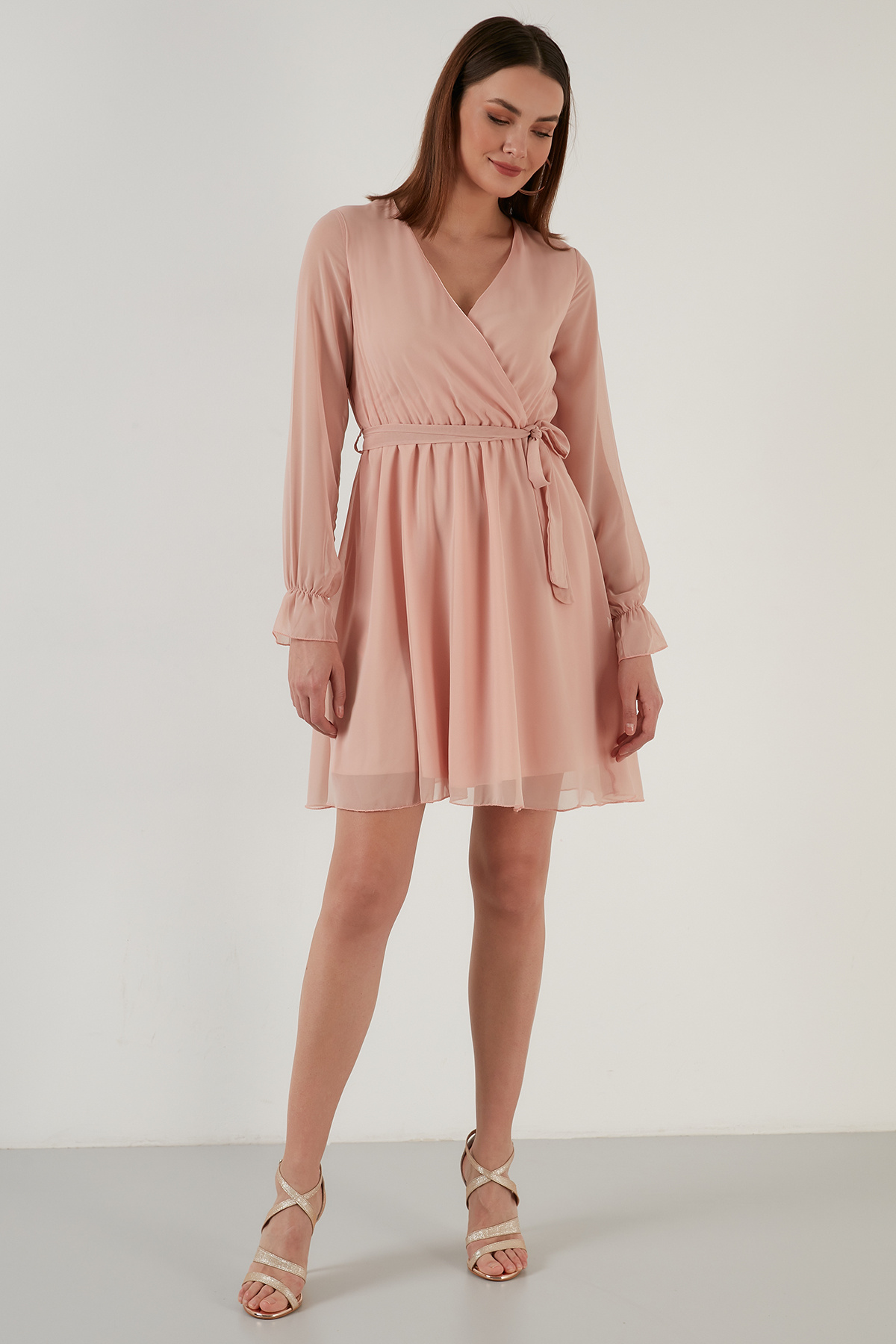 Kruvaze Yaka Bağlama Detaylı Şifon Mini Abiye Elbise ELBİSE 6051467 Kruvaze Yaka Bağlama Detaylı Şifon Mini Abiye Elbise ELBİSE 6051467 42