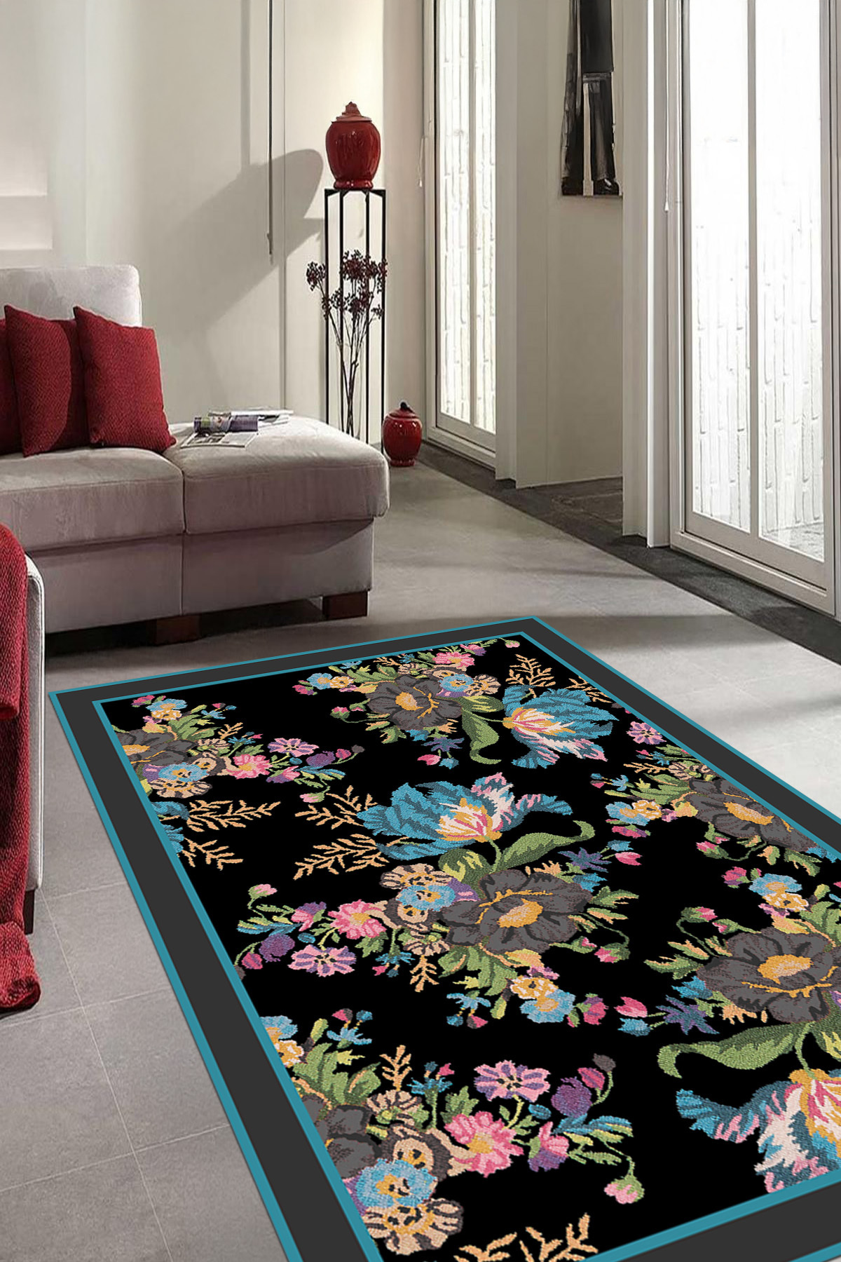 Salon Halısı Figürlü Çiçekli Siyah Mavi Pembe Kaydırmaz Kesme Yıkanabilir Ince Halı Tüysüz Kilim Salon Halısı Figürlü Çiçekli Siyah Mavi Pembe Kaydırmaz Kesme Yıkanabilir Ince Halı Tüysüz Kilim 10POST6791987983105 160 x 230