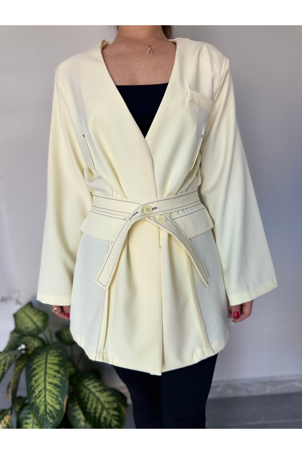 Kadın Mono Yaka Cepli Astarlı Ceket Kadın Mono Yaka Cepli Astarlı Ceket GEZ060012 4XL