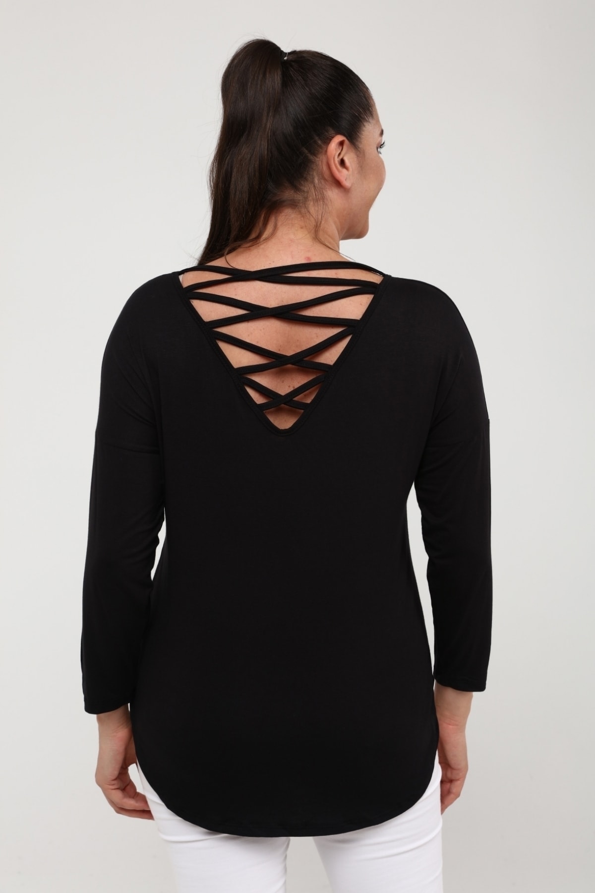 Büyük Beden Sırt Çapraz Pul Şerit Uzun Kol Bluz Büyük Beden Sırt Çapraz Pul Şerit Uzun Kol Bluz C2077 58-60