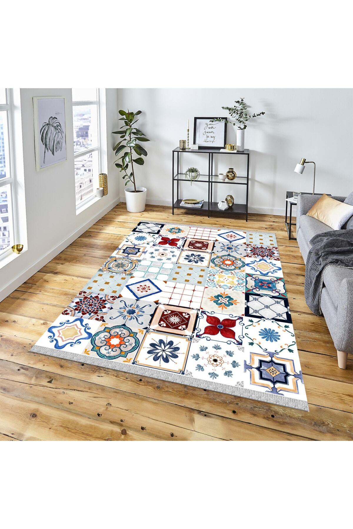 Çini Karo Desenli Halı Dijital Baskı Yıkanabilir Kaymaz Taban Leke Tutmaz Modern Salon Halısı Çini Karo Desenli Halı Dijital Baskı Yıkanabilir Kaymaz Taban Leke Tutmaz Modern Salon Halısı BFOMIX3 160 x 230