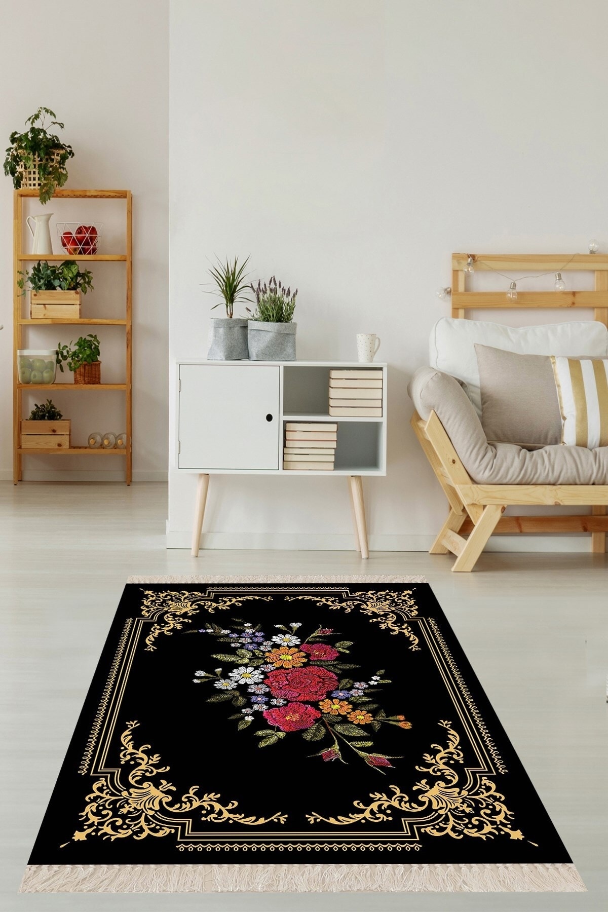 Çiçek Desenli Çerçeveli Yıkanabilir Kaymaz Taban Leke Tutmaz Düz Salon Halı Ve Yolluk Çiçek Desenli Çerçeveli Yıkanabilir Kaymaz Taban Leke Tutmaz Düz Salon Halı Ve Yolluk BFOFLW10 180 x 300