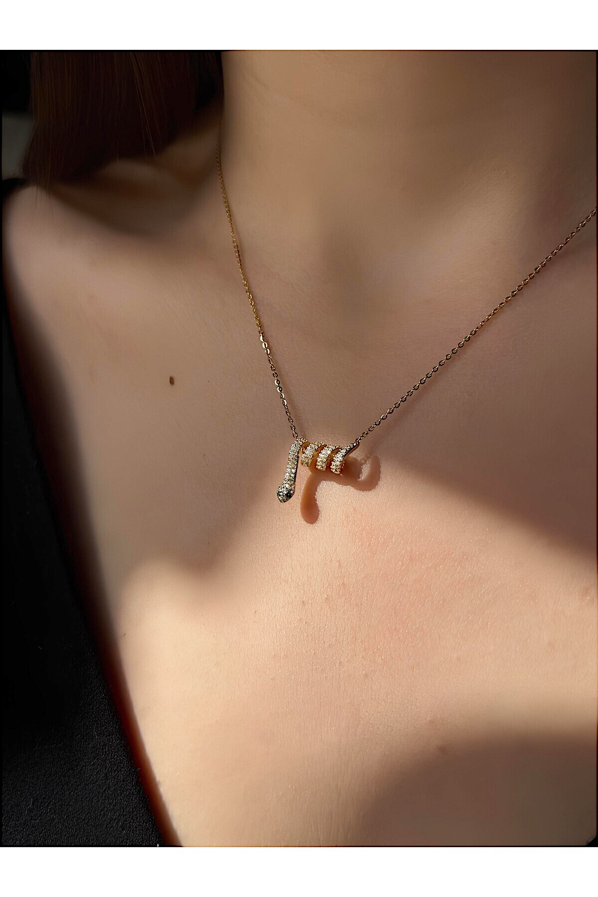 14k Zirkon Taşlı Yılan Figürlü Kolye 14k Zirkon Taşlı Yılan Figürlü Kolye mxylnn01 تک سایز