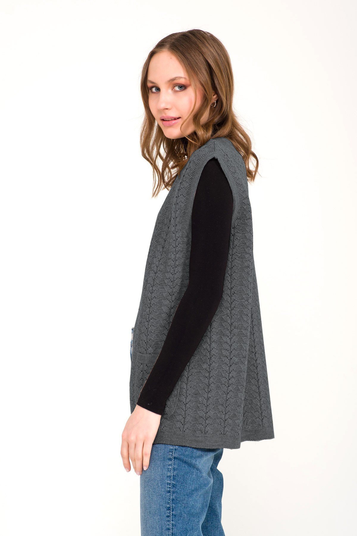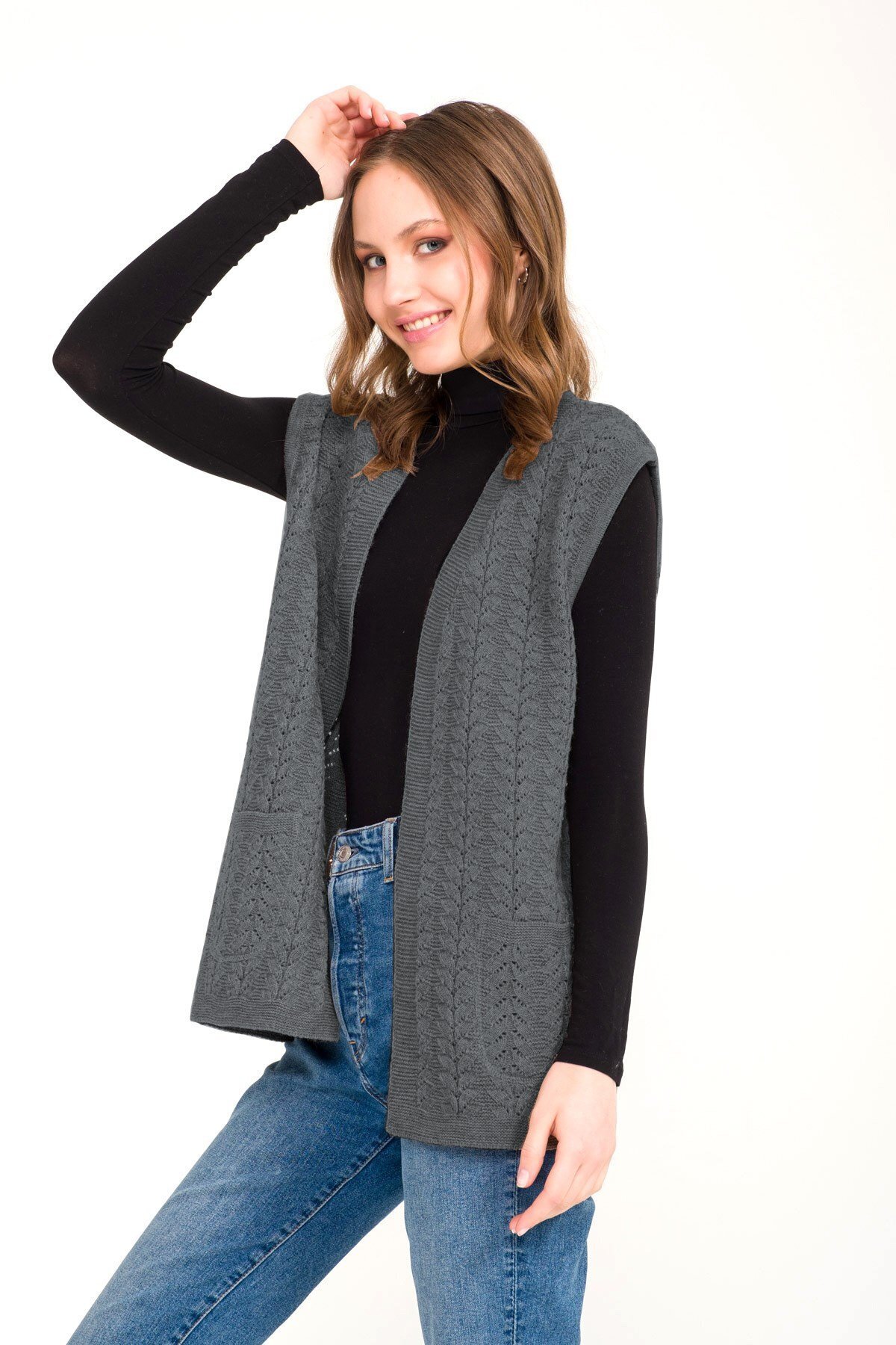 Kadın Füme Cepli Kışlık Kalın Örme Triko Anne Yelek Kadın Füme Cepli Kışlık Kalın Örme Triko Anne Yelek 1003 2XL