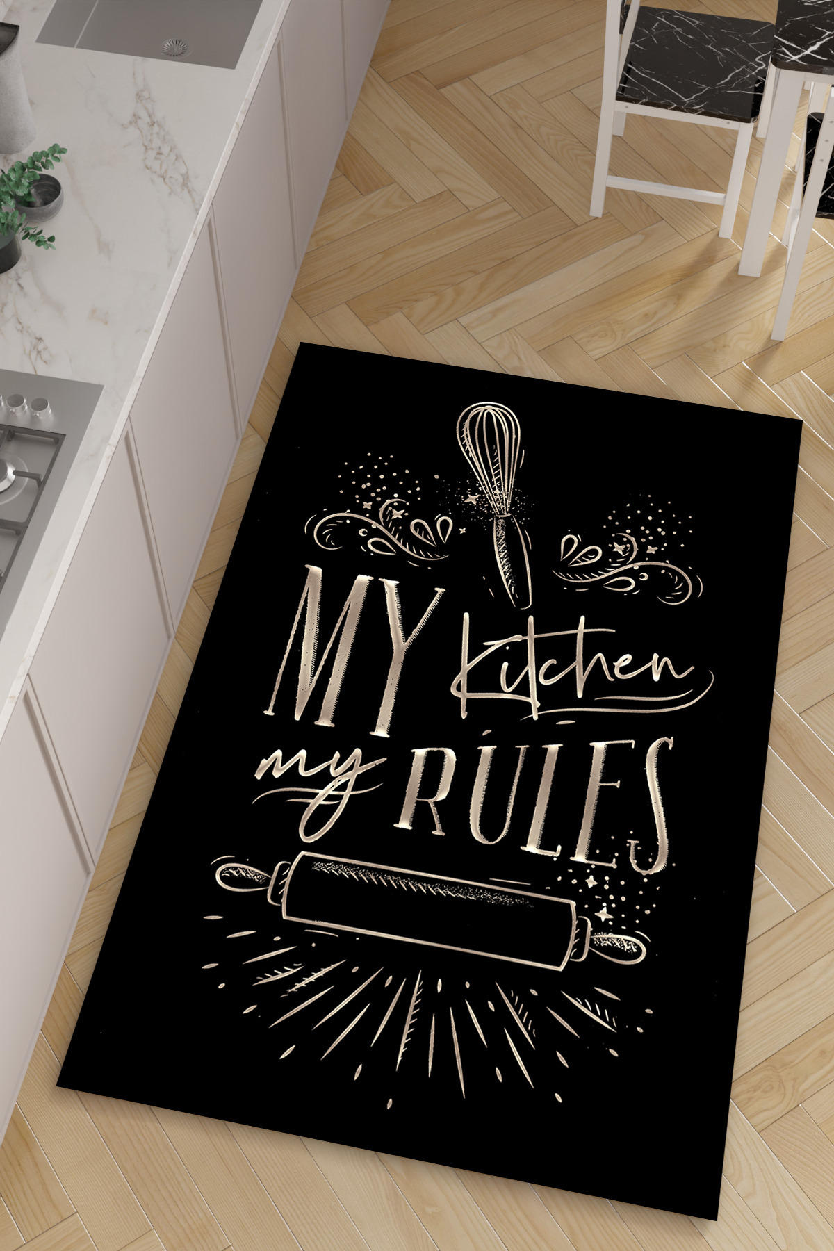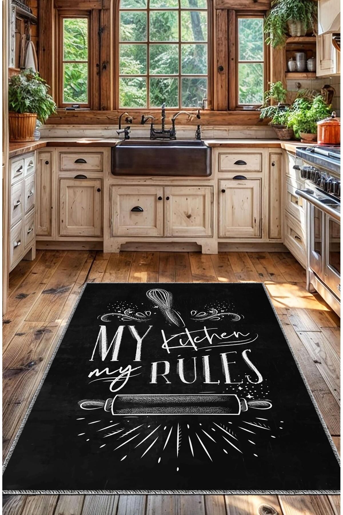 Kitchen Rules Dijital Baskılı Kaymaz Taban Yıkanabilir Leke Tutmaz Mutfak Halısı Kitchen Rules Dijital Baskılı Kaymaz Taban Yıkanabilir Leke Tutmaz Mutfak Halısı MNTKT10 160 x 230