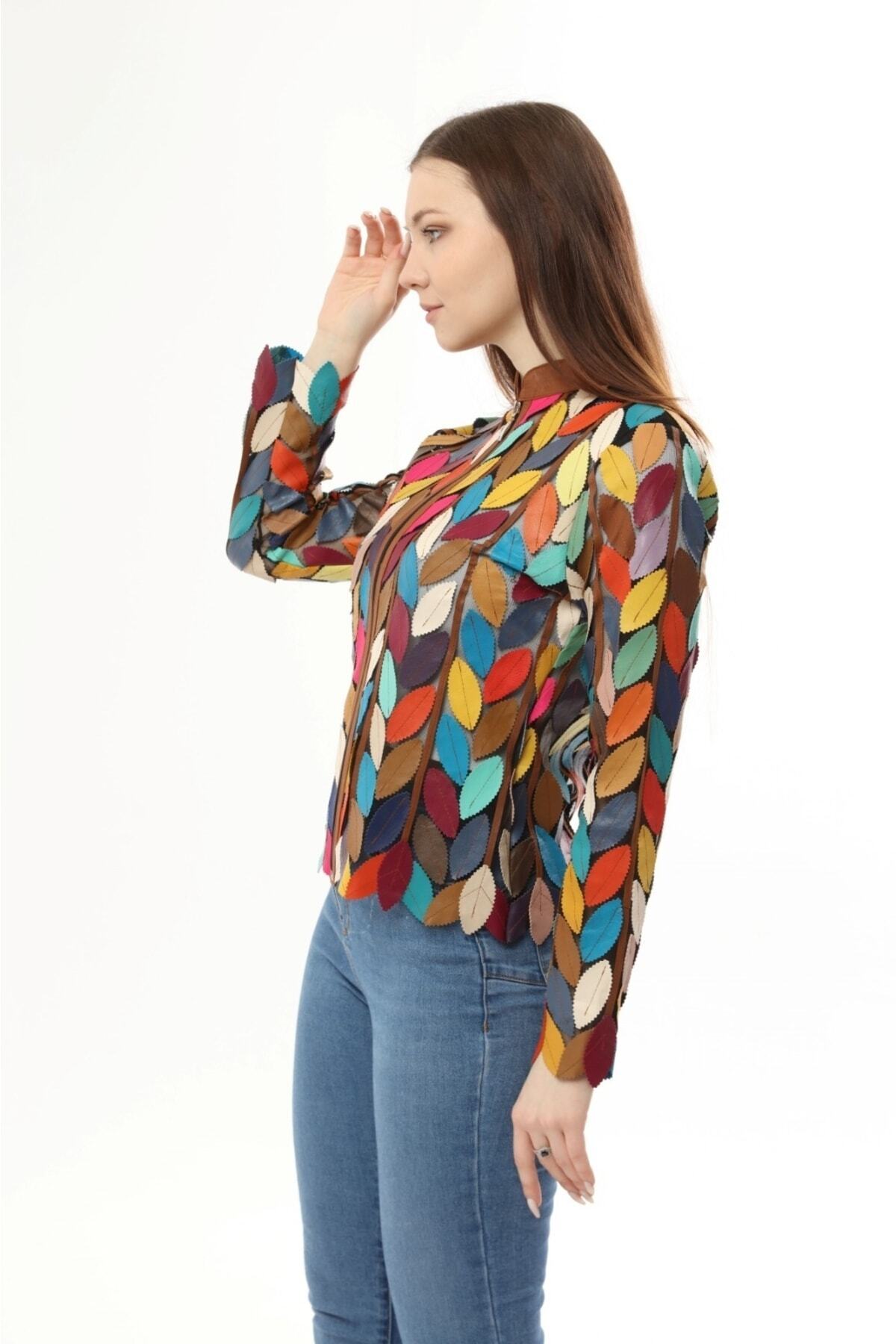 Yaprak Desenli Hakiki Deri Kadın Ceket Yaprak Desenli Hakiki Deri Kadın Ceket YAPDES-25KAR 4XL