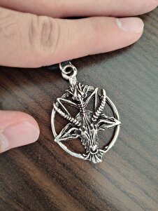 Pentagram Yıldızı Keçi Kafası Gümüş Kaplama Düz Zincir Kolye Pentagram Yıldızı Keçi Kafası Gümüş Kaplama Düz Zincir Kolye 1187 60 cm