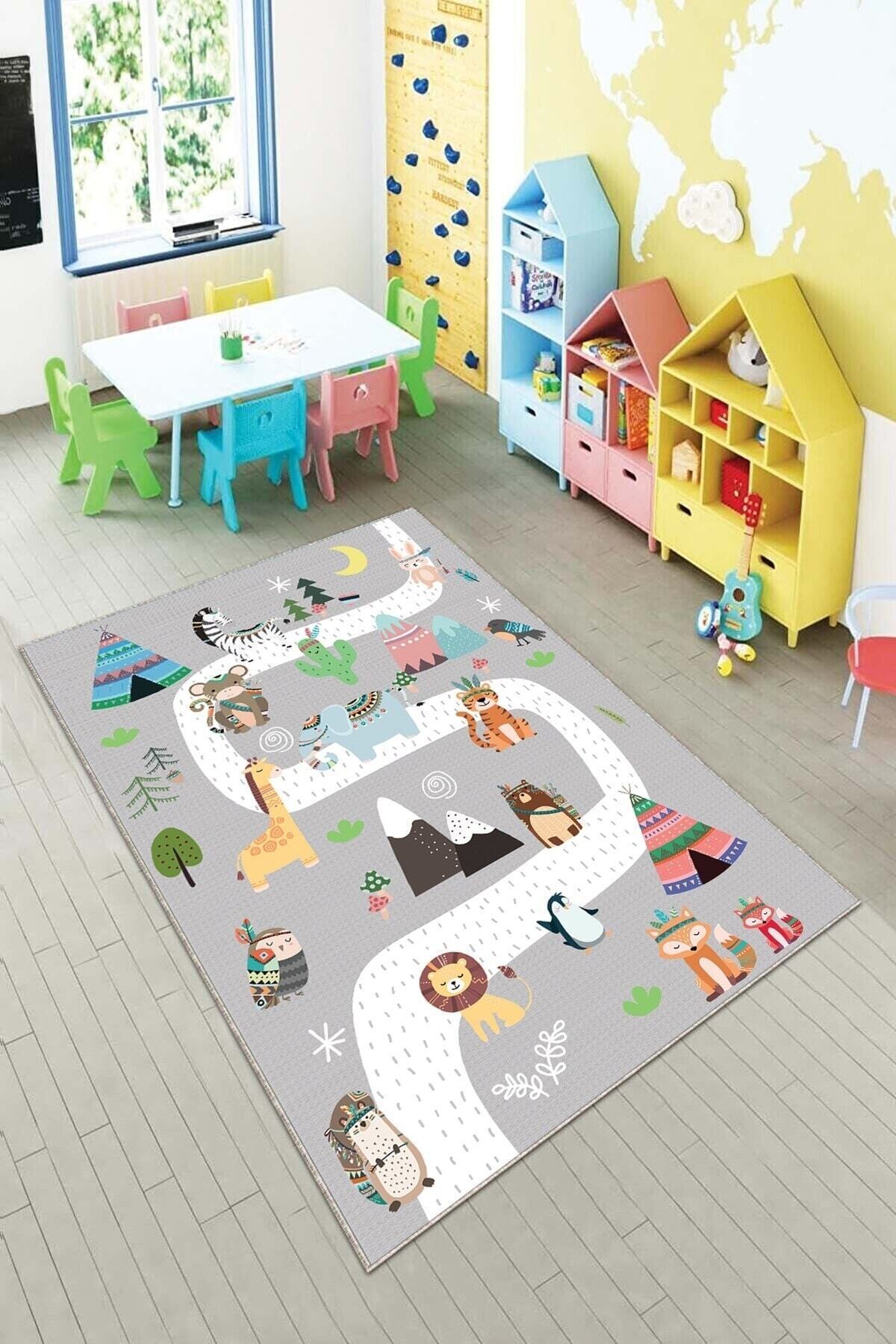 Gri Gemide Hayvanlar Alemi Yıkanabilir Kaymaz Taban Leke Tutmazbebek Ve Çocuk Odası Halısı Gri Gemide Hayvanlar Alemi Yıkanabilir Kaymaz Taban Leke Tutmazbebek Ve Çocuk Odası Halısı AYCKID12 160 x 230