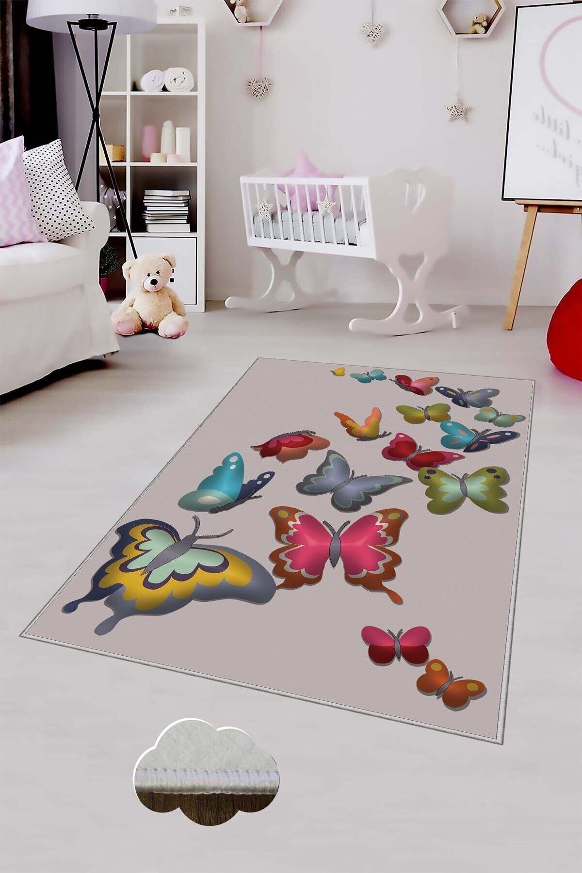 Gri Kelebekler Desenli Yıkanabilir Kaymaz Taban Leke Tutmazbebek Ve Çocuk Odası Halısı Gri Kelebekler Desenli Yıkanabilir Kaymaz Taban Leke Tutmazbebek Ve Çocuk Odası Halısı AYCKID14 160 x 230