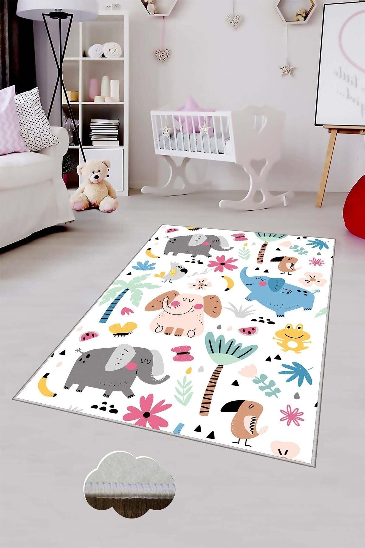 Beyaz Sevimli Hayvanlar Desenli Yıkanabilir Kaymaz Taban Leke Tutmazbebek Ve Çocuk Odası Halısı Beyaz Sevimli Hayvanlar Desenli Yıkanabilir Kaymaz Taban Leke Tutmazbebek Ve Çocuk Odası Halısı AYCKID4 160 x 230