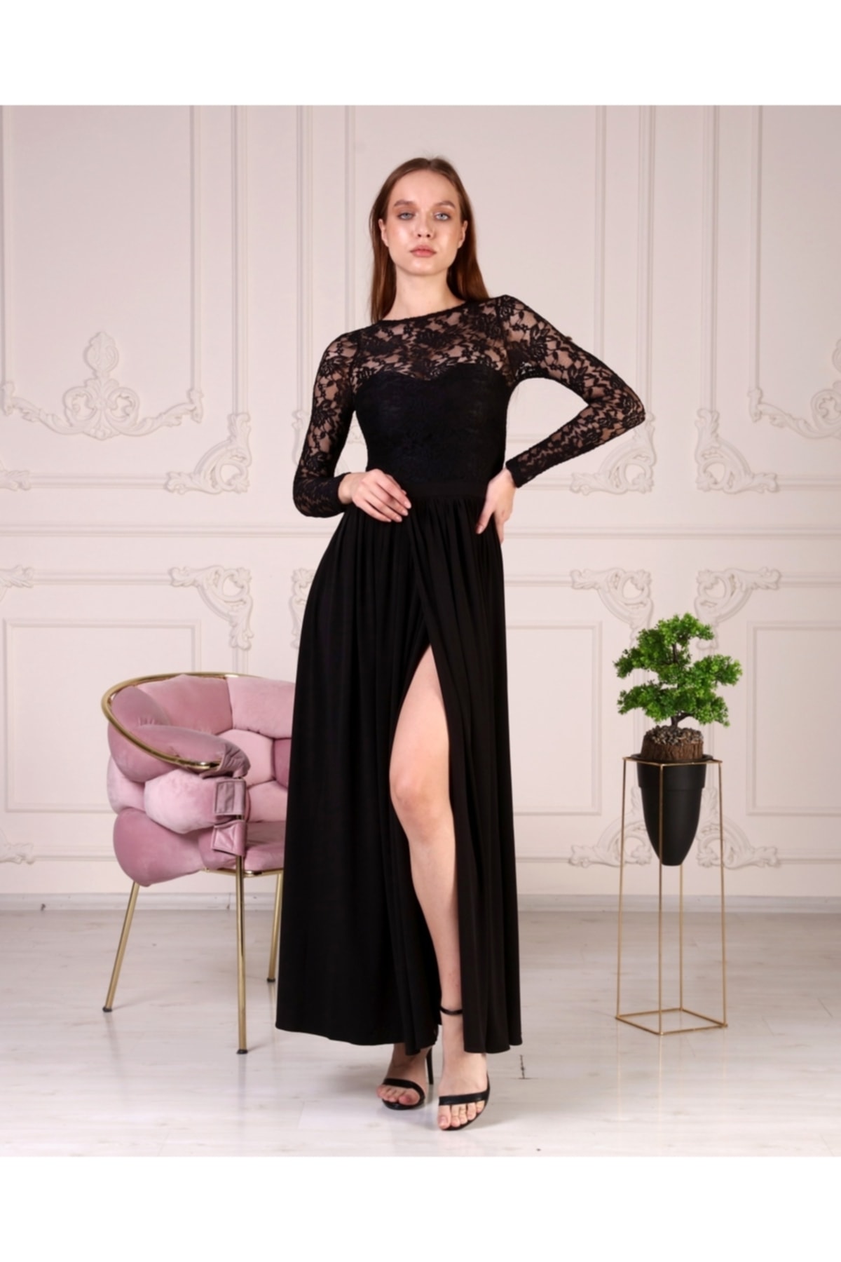 Lacivert Güpürlü Kadın Abiye Elbise Lacivert Güpürlü Kadın Abiye Elbise SA-168 34