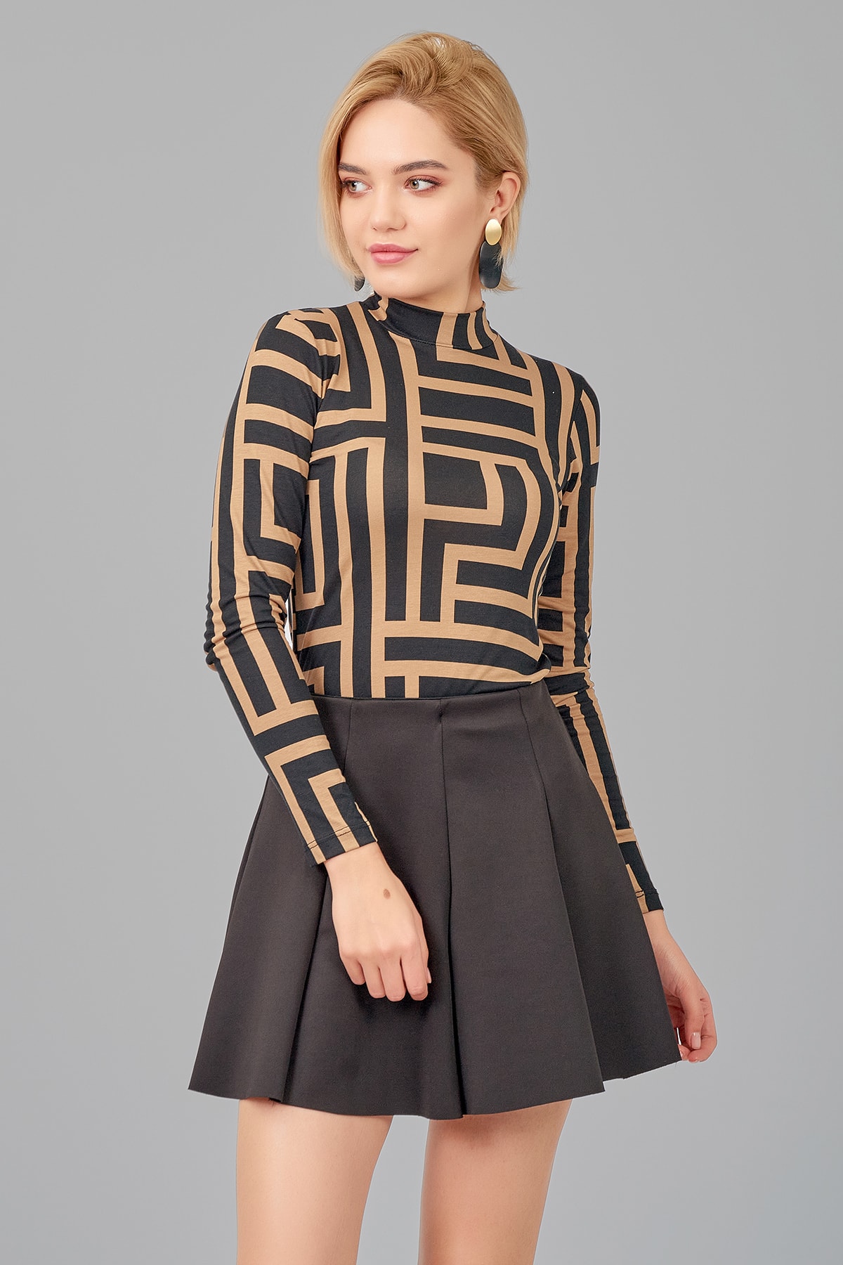 Kadın Yarım Balıkçı Koyu Zebra Desenli Baskılı Kısa Kol Body Kadın Yarım Balıkçı Koyu Zebra Desenli Baskılı Kısa Kol Body TYC00410722583 L