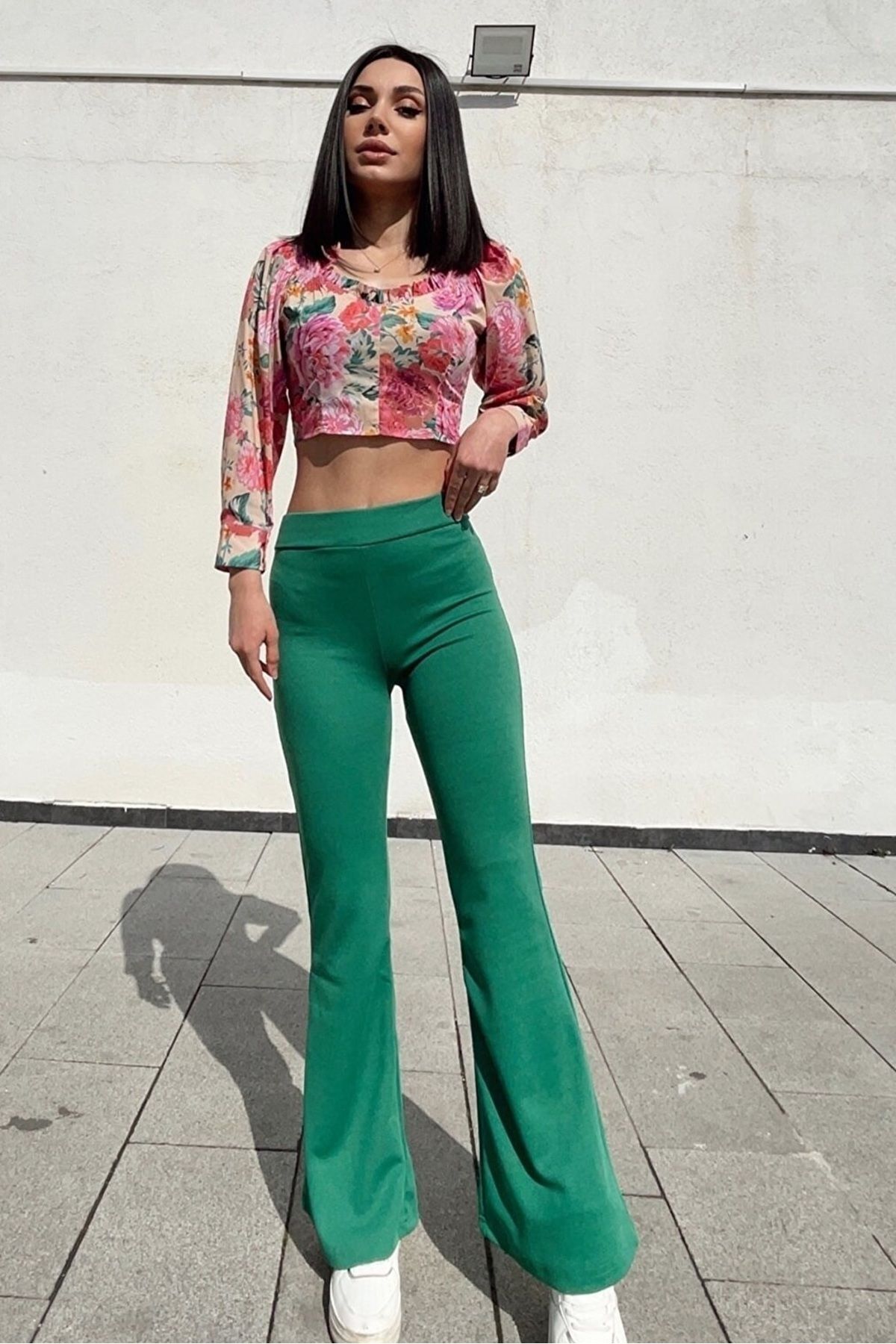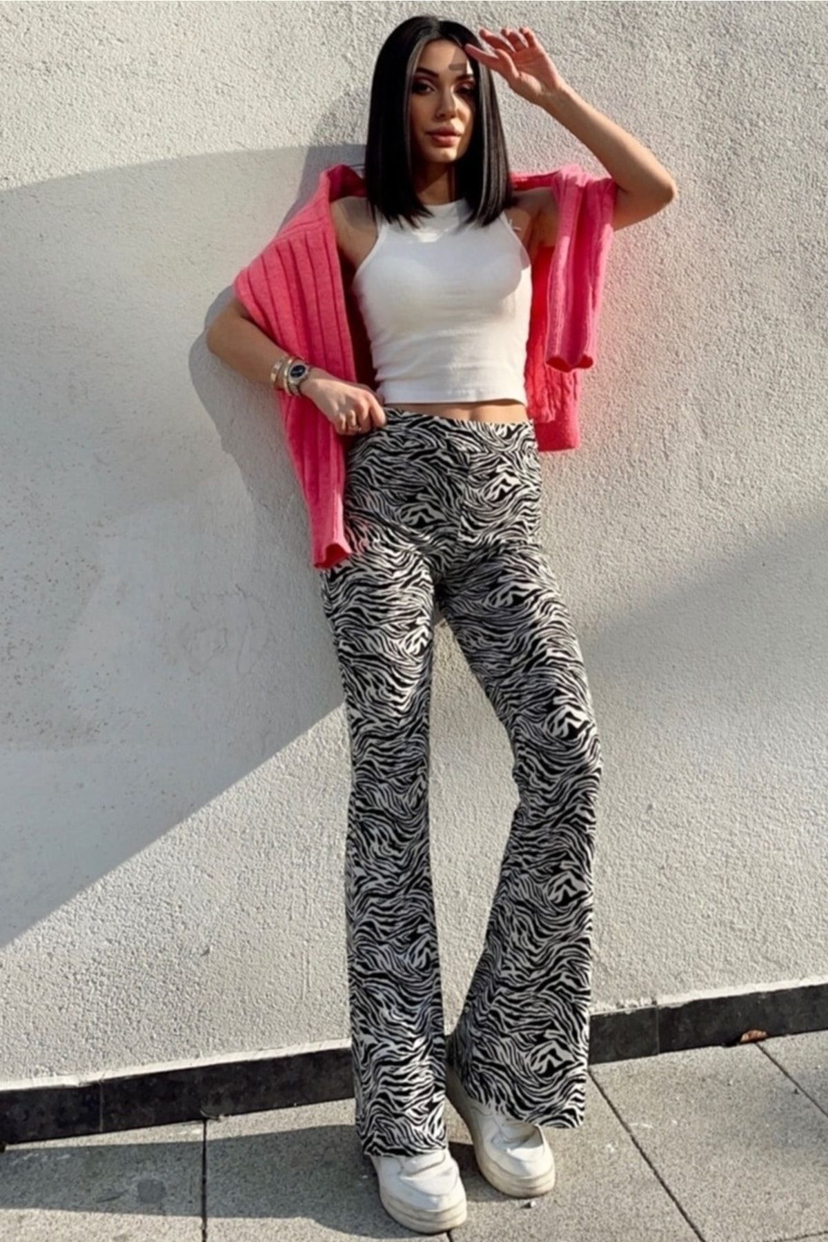Bej Krep Kumaş Desenli Yüksek Bel Likralı Ispanyol Paça Pantolon 100 Cm Bej Krep Kumaş Desenli Yüksek Bel Likralı Ispanyol Paça Pantolon 100 Cm PANTOLON024 XL