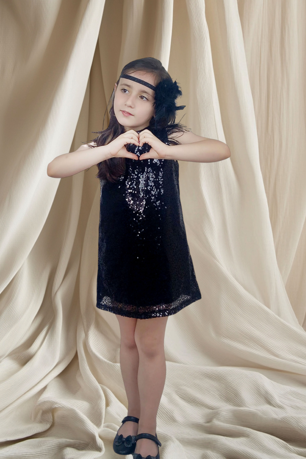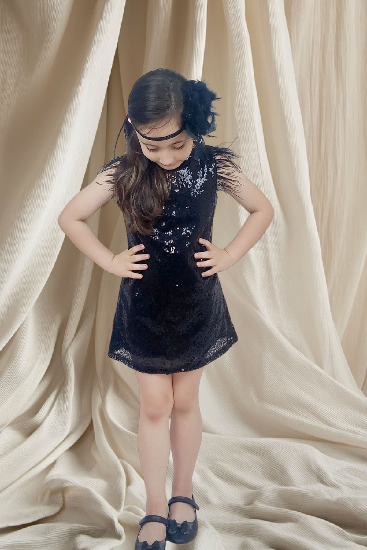 Kız Çocuk Siyah Pullu Tüy Detaylı Kısa Abiye Kız Çocuk Siyah Pullu Tüy Detaylı Kısa Abiye Gİ30038 11 Yaş