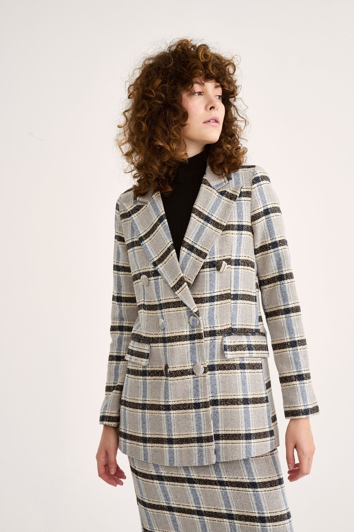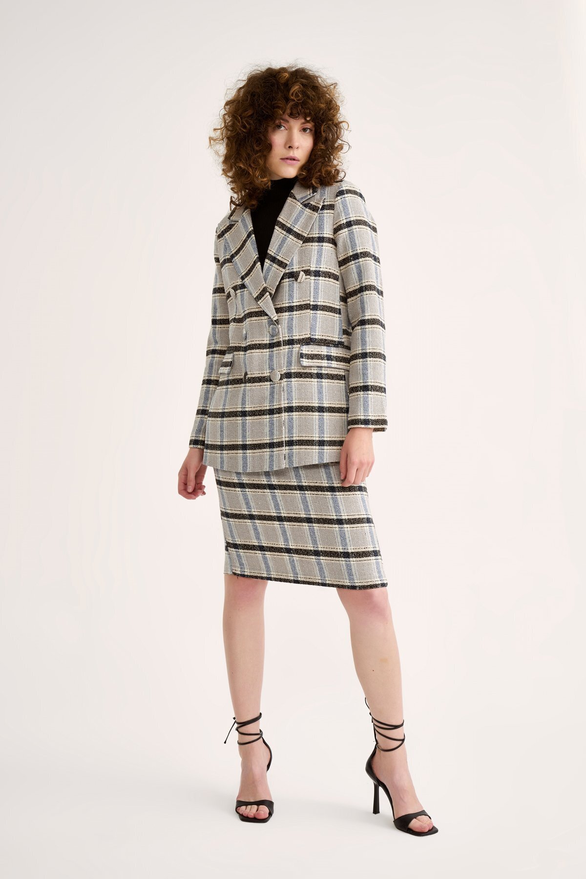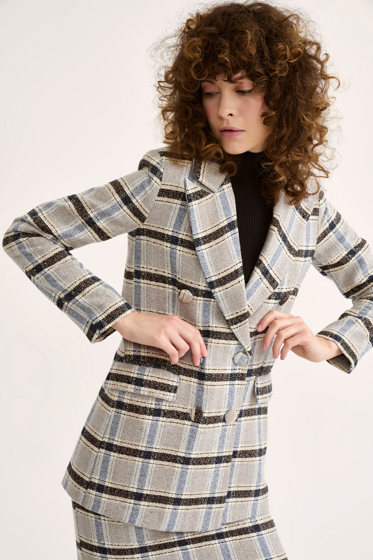 Düğme detaylı ekose ceket - Mavi Düğme detaylı ekose ceket - Mavi STN139KCE790 42
