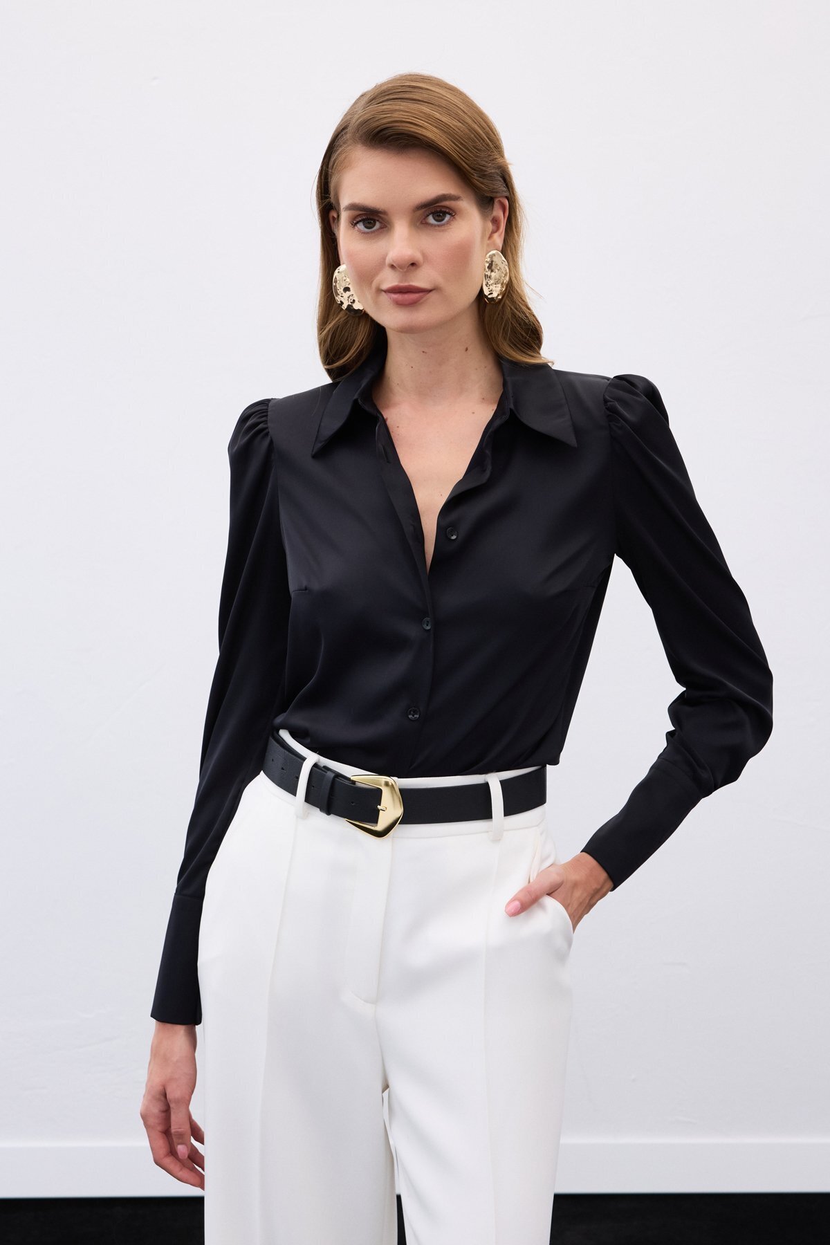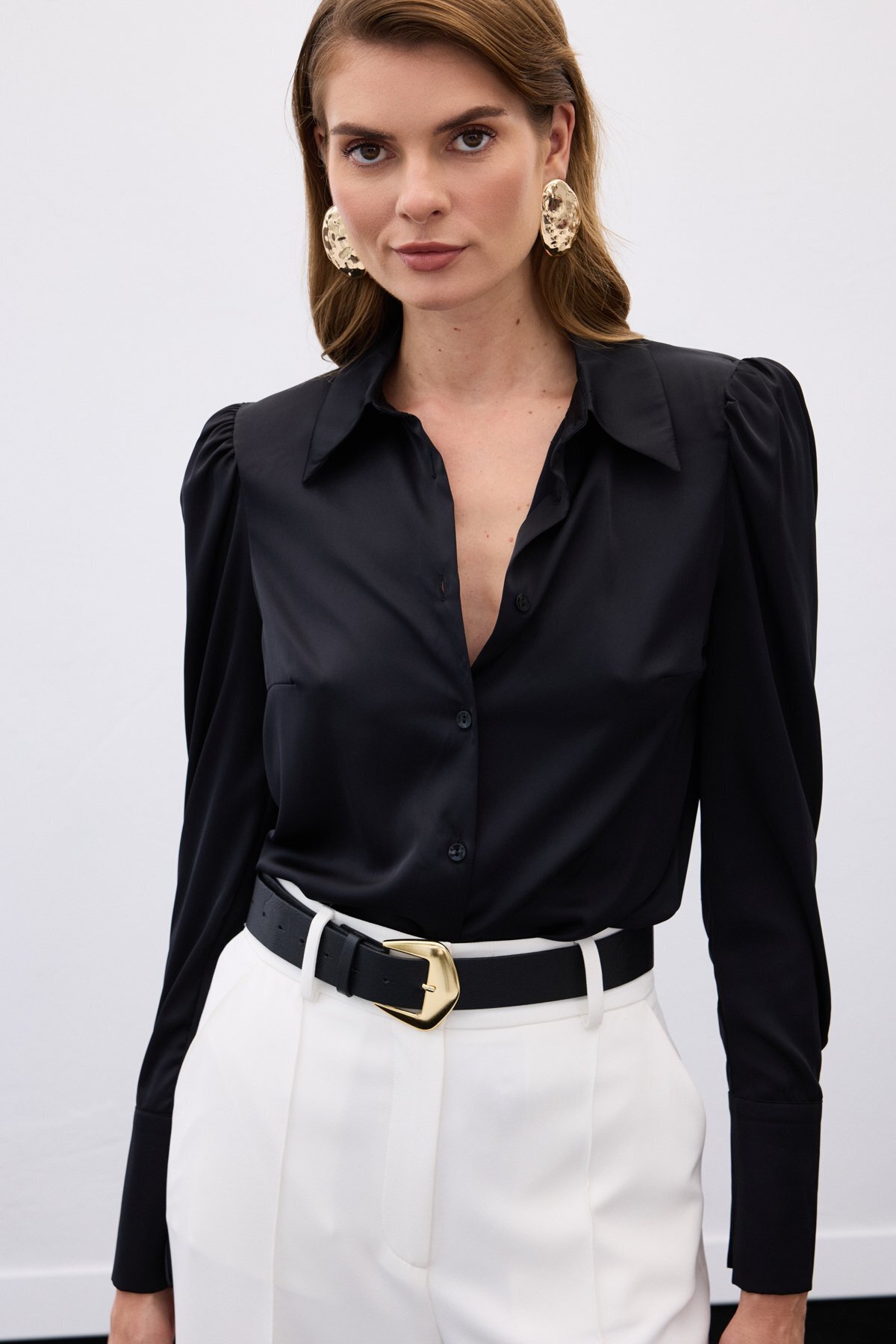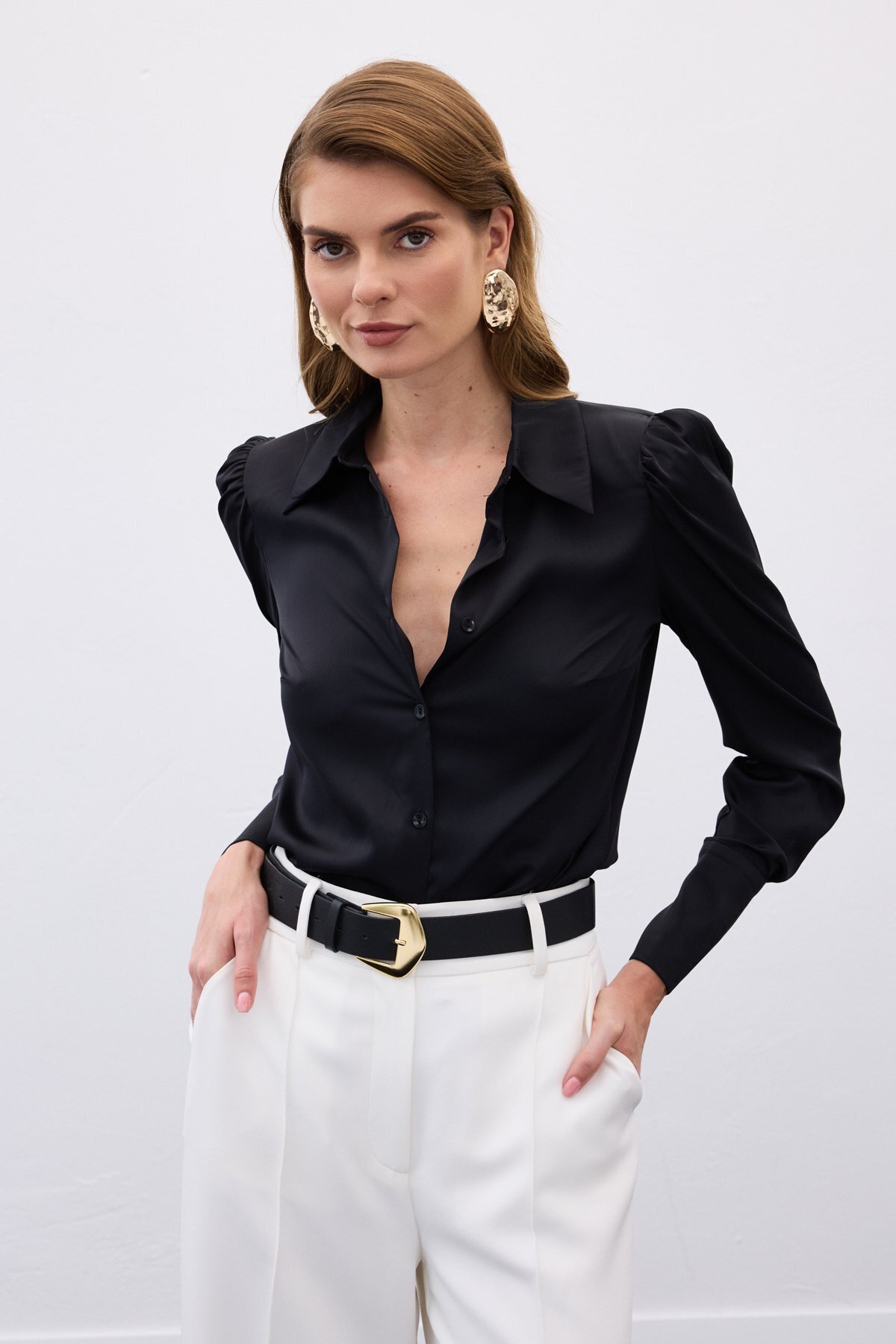 Vatkalı Saten Gömlek - Siyah Vatkalı Saten Gömlek - Siyah STN139KGO865 42
