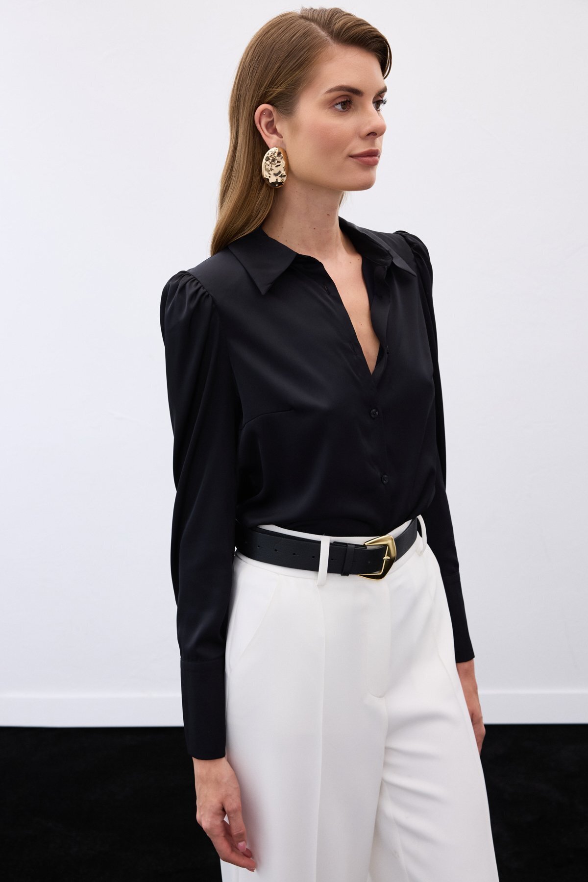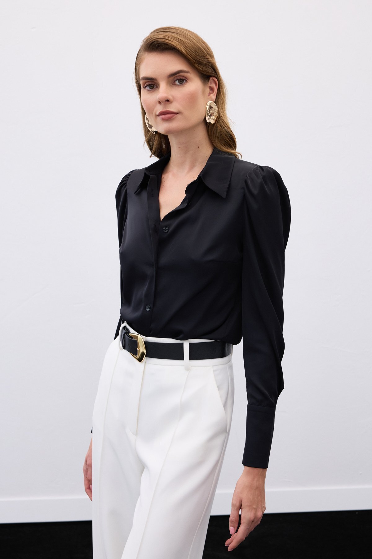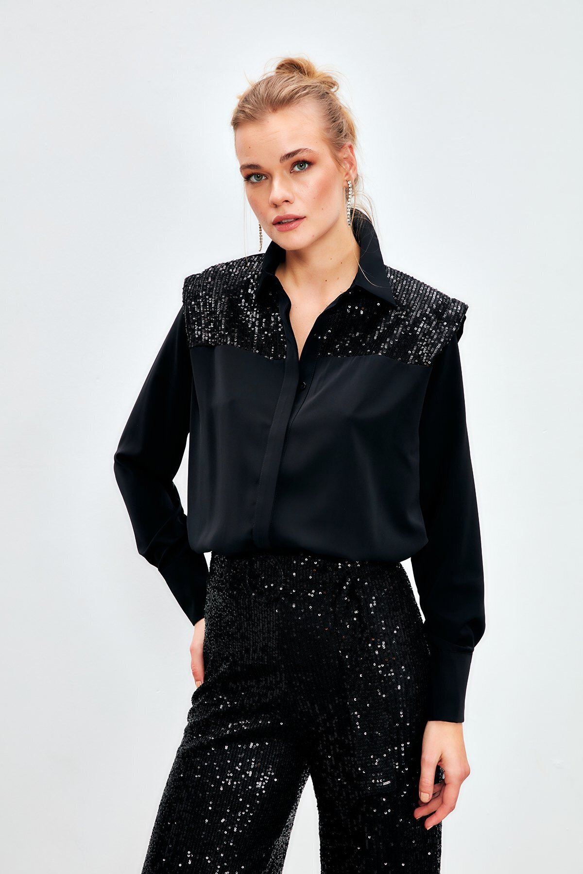 Vatkalı Saten Gömlek - Siyah Vatkalı Saten Gömlek - Siyah STN139KGO865 42