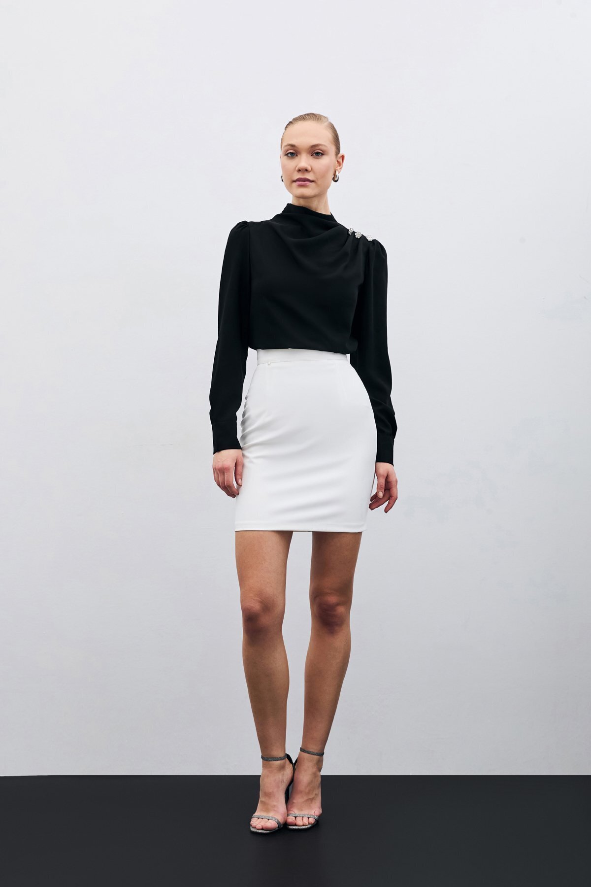 Düğmeleri Taş Detaylı Bluz - Siyah Düğmeleri Taş Detaylı Bluz - Siyah STN139KBL652 42