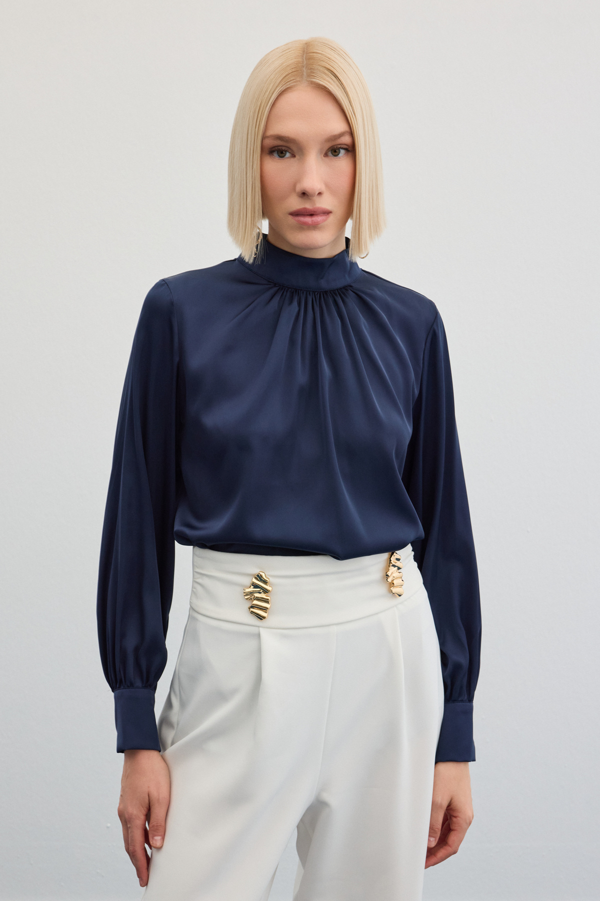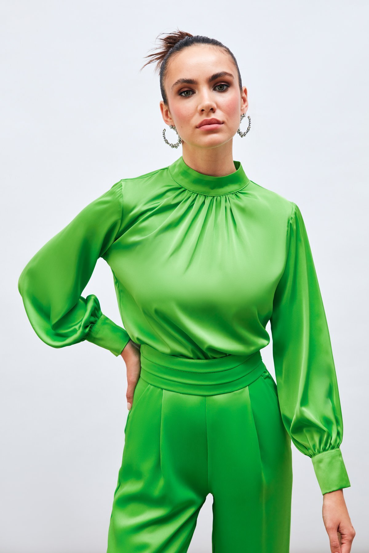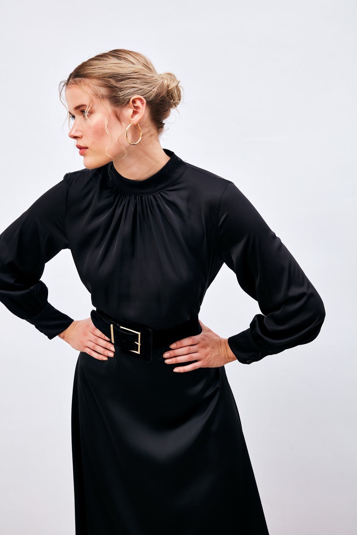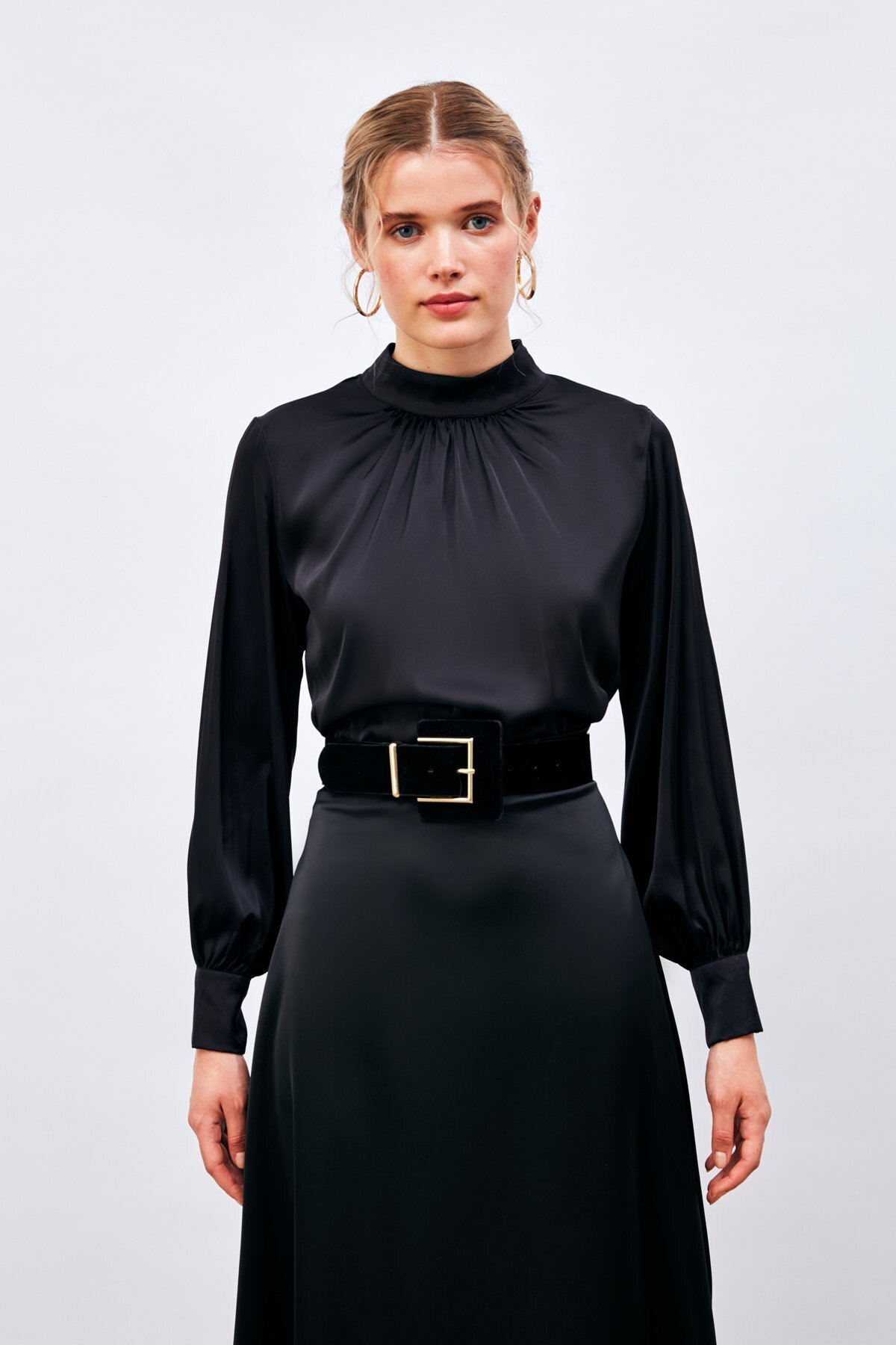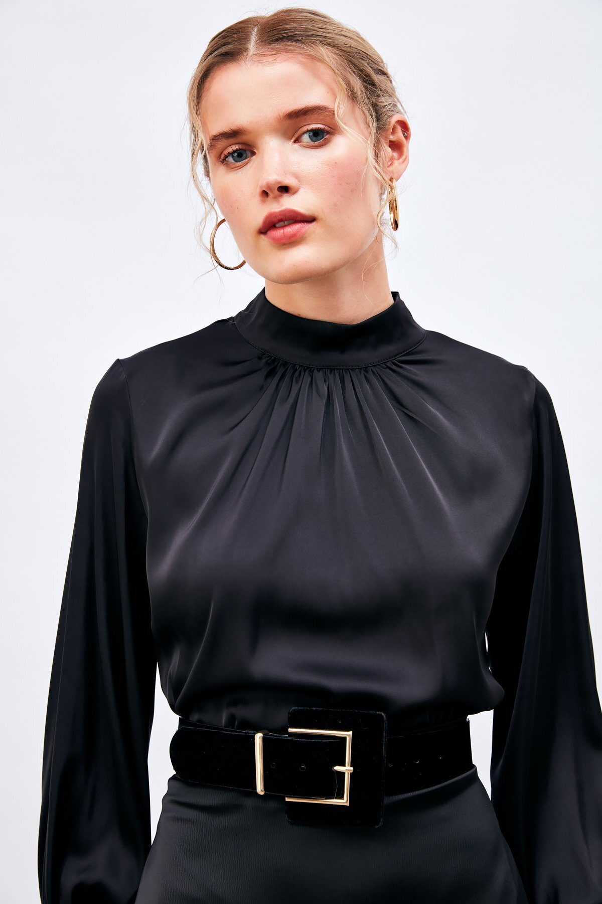 Yaka Detaylı Saten Bluz - Siyah Yaka Detaylı Saten Bluz - Siyah STN139KBL874 42