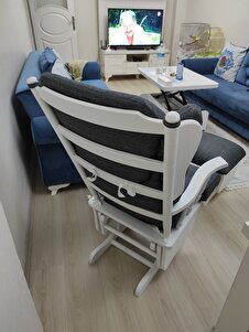 Ayak puflu sallanan sandalye gayet konforlu çok beğendim rengini gri aldım ve beyaz ahşap gayet güzel mobilyalarıma uyum sağladı ancak ahşabın beyaz boyasında bir kaç tane çizikler ve bir kaç tane soyuklar vardı bunun dışında gayet kullanışlı sağlam ayrıca oturma kılıfı fermuarlı çıkartılıp yıkanabilmesi büyük kolaylık. Tavsiye ederim. İnsanı dinlendiriyor film izle, kitap oku, kahveni iç muazzam keyifli. Horoz Lojistik taşıyıcı firma personeli ile evinize dairenize kadar teslim ediliyor. Montajı da çok basit 4 tane vida somunu ile alyan yardımıyla sıkıştırıp anında kullanıma hazır. Sandalye iki parça halinde geliyor, basit montajı herkes yapabilir. Montajı ile uğraşmak istemeyenlere montaj hizmeti veriliyor (1.200 ₺) montaj ücreti var. Bu ücreti ekstra vermek istemeyenler 4 tane vidayı takıp sıkarım diyenler montaj ücreti almasın zira ben montaj ücreti almadım 4 tane vidayı kendim takıp sıkıştırıp montajladım gayet basit.