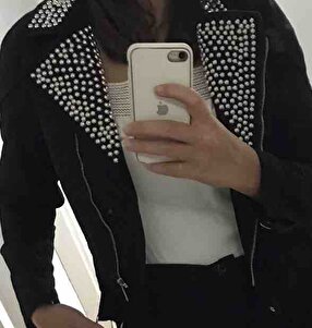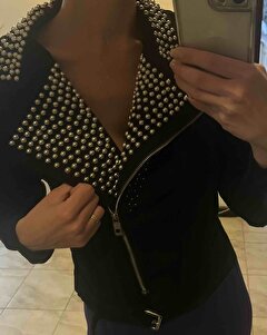 Kadın Yakası Zımbalı Çapraz Kapama Biker Kot Mont Kadın Yakası Zımbalı Çapraz Kapama Biker Kot Mont TYC00417476075 L