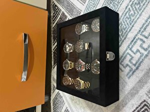 Richbox 12'li Saat Kutusu Dekoratif Köşe Korumalı Süet Siyah Richbox 12'li Saat Kutusu Dekoratif Köşe Korumalı Süet Siyah DÇM0068 تک سایز
