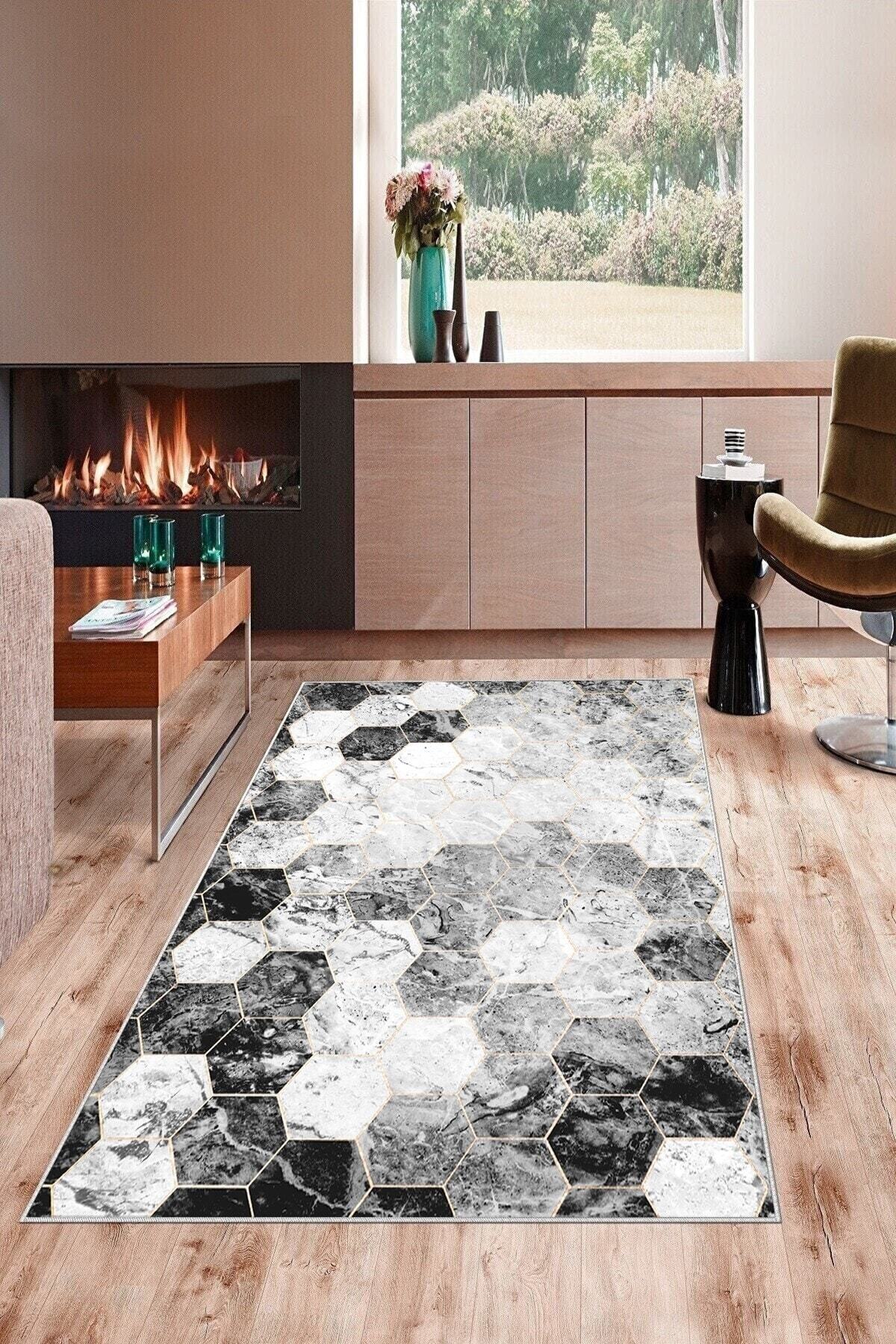 Gri Mermer Desenli Yıkanabilir Kaymaz Taban Leke Tutmaz Modern Salon Halısı Ve Yolluk Gri Mermer Desenli Yıkanabilir Kaymaz Taban Leke Tutmaz Modern Salon Halısı Ve Yolluk AYHMOD20 160 x 230