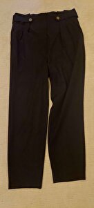 Yüksek Bel Kemerli Pile Ve Düğme Detaylı Şık Kumaş Pantolon -Lacivert Yüksek Bel Kemerli Pile Ve Düğme Detaylı Şık Kumaş Pantolon -Lacivert 40042 42