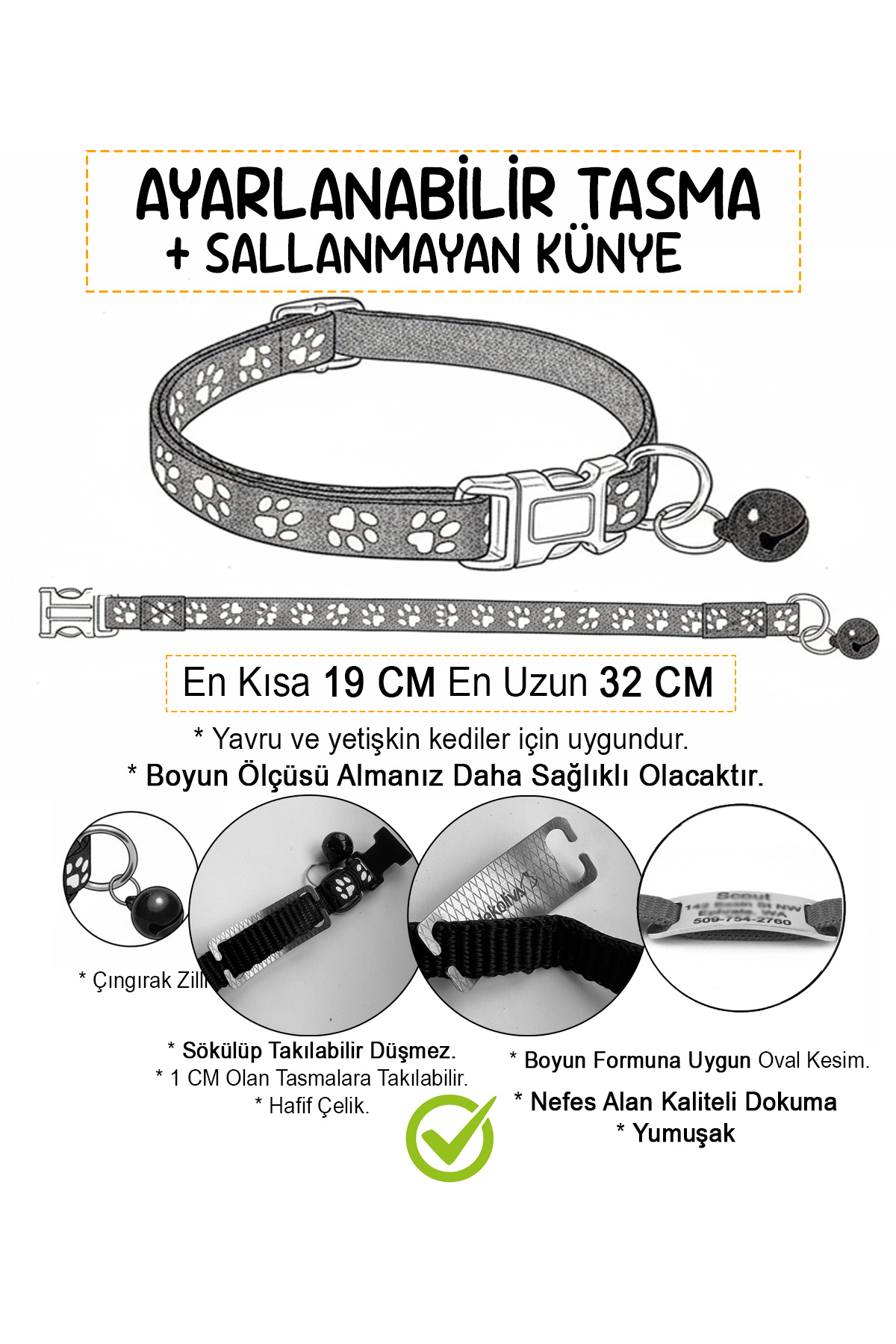 Sallanmayan Kedi Tasması Metal Isimlikli Telefon Numarası Yazılı Sallanmayan Kedi Tasması Metal Isimlikli Telefon Numarası Yazılı sallkirmizi Standart