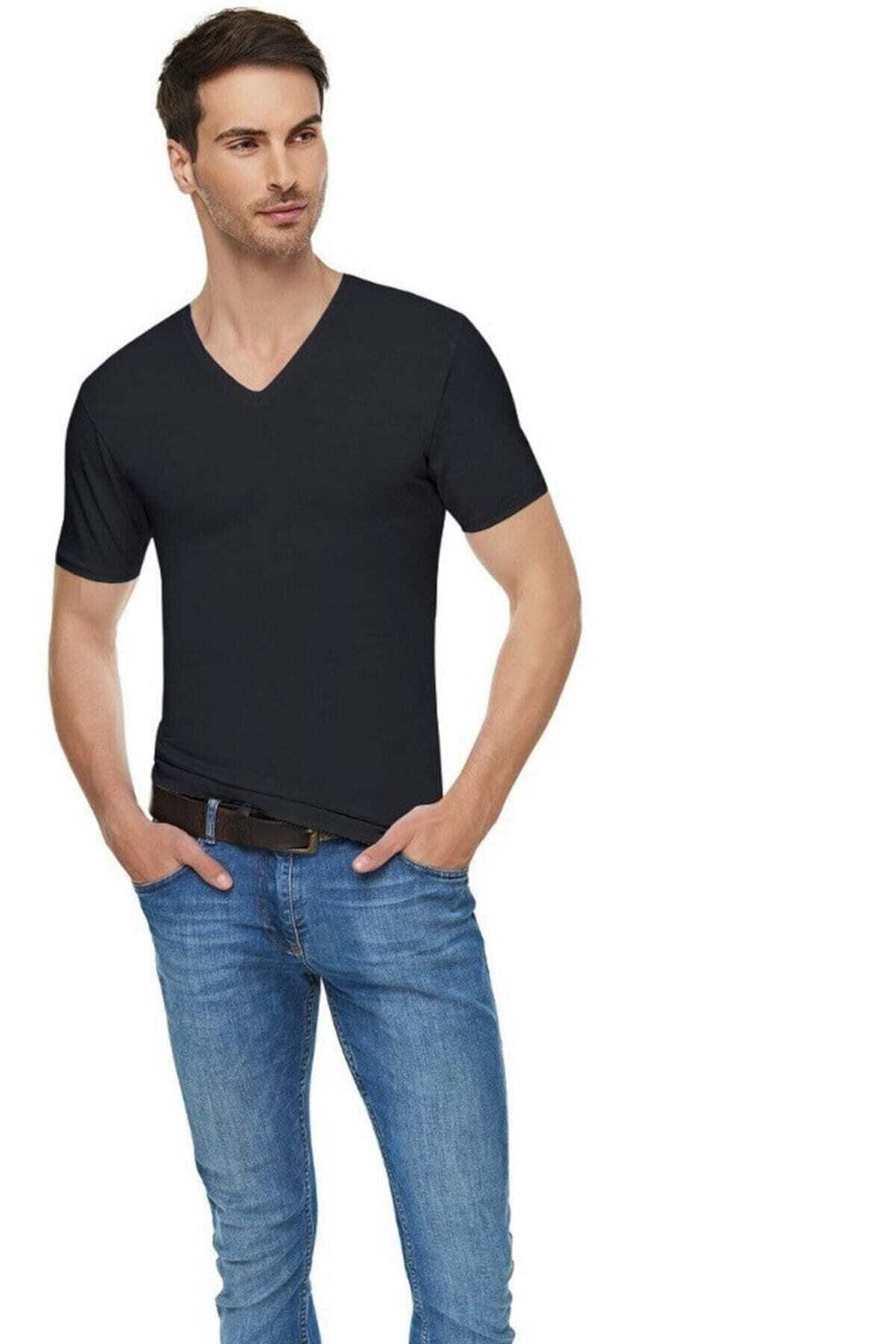 Erkek 4'lü Siyah Elastan Likralı V Yaka Kısa Kol Pamuklu T-shirt Erkek 4'lü Siyah Elastan Likralı V Yaka Kısa Kol Pamuklu T-shirt İNC4LÜ-ELT1303 2XL