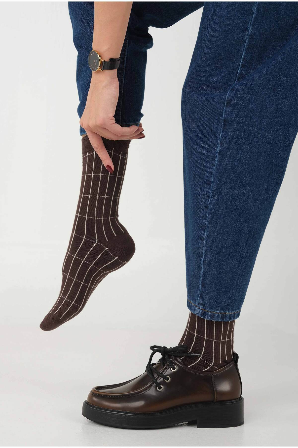 Çizgi Detaylı Diz Altı Çorap Browni Çizgi Detaylı Diz Altı Çorap Browni cddac001 Standart