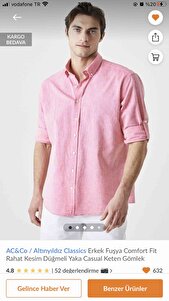 Erkek Fuşya Keten Comfort Fit Rahat Kesim Düğmeli Yaka Casual Gömlek Erkek Fuşya Keten Comfort Fit Rahat Kesim Düğmeli Yaka Casual Gömlek 4A2022200085 2XL