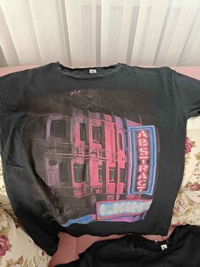 Oversize Antrasit Pamuklu Büyük Baskılı Tişört Oversize Antrasit Pamuklu Büyük Baskılı Tişört HMR09 L