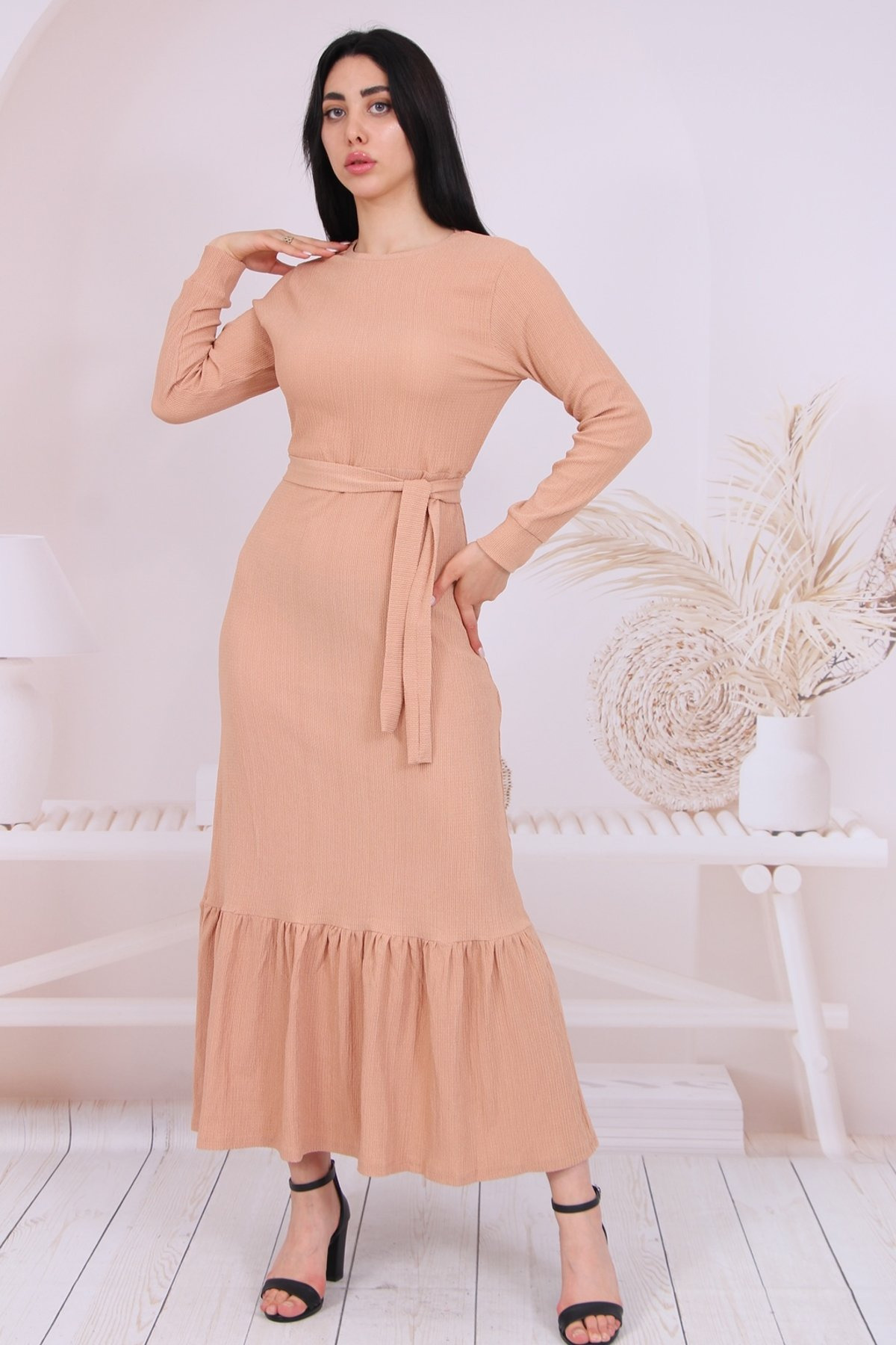 Midi Boy Bağcıklı Tül Elbise Midi Boy Bağcıklı Tül Elbise 224660 5XL