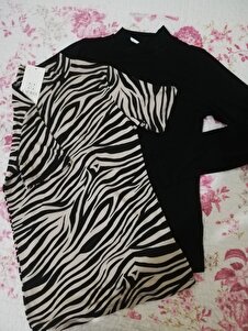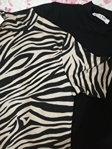 Kadın Bej Zebra Desenli Kısa Kol Body Kadın Bej Zebra Desenli Kısa Kol Body ZFR106 L