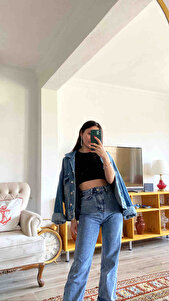 Mavi Yüksek Bel Paçası Yırtmaçlı Kadın Jean Mg1384 Mavi Yüksek Bel Paçası Yırtmaçlı Kadın Jean Mg1384 MG1384 44