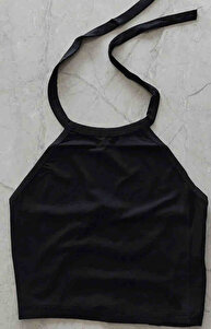 Kadın Siyah Boyundan Bağlamalı Crop Bluz EY1480 Kadın Siyah Boyundan Bağlamalı Crop Bluz EY1480 M