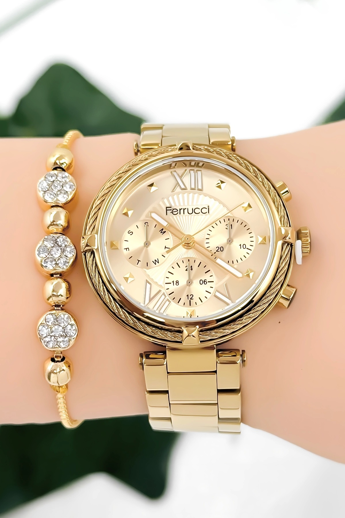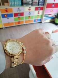 Kadın Kol Saati Çelik Kordon Çelik Kasa Taşlı Bileklik Hediyesi ile Gold zmfer045 Kadın Kol Saati Çelik Kordon Çelik Kasa Taşlı Bileklik Hediyesi ile Gold zmfer045 تک سایز