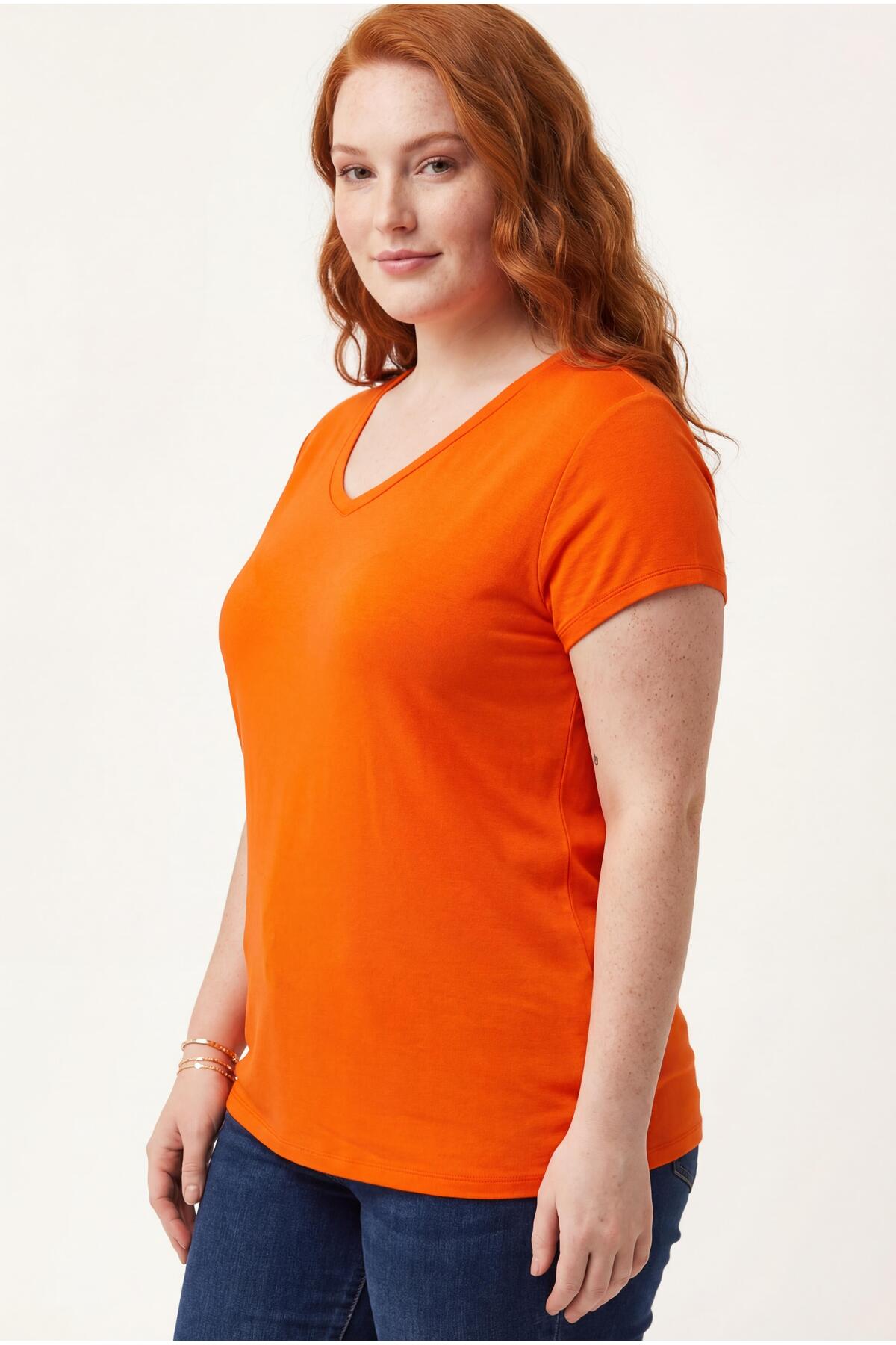 Kadın Büyük Beden V Yaka Turuncu Tişört – Rahat Kesim, Nefes Alan Kumaş, 6XL'e Kadar Beden Seçeneği Kadın Büyük Beden V Yaka Turuncu Tişört – Rahat Kesim, Nefes Alan Kumaş, 6XL'e Kadar Beden Seçeneği 1112 6XL
