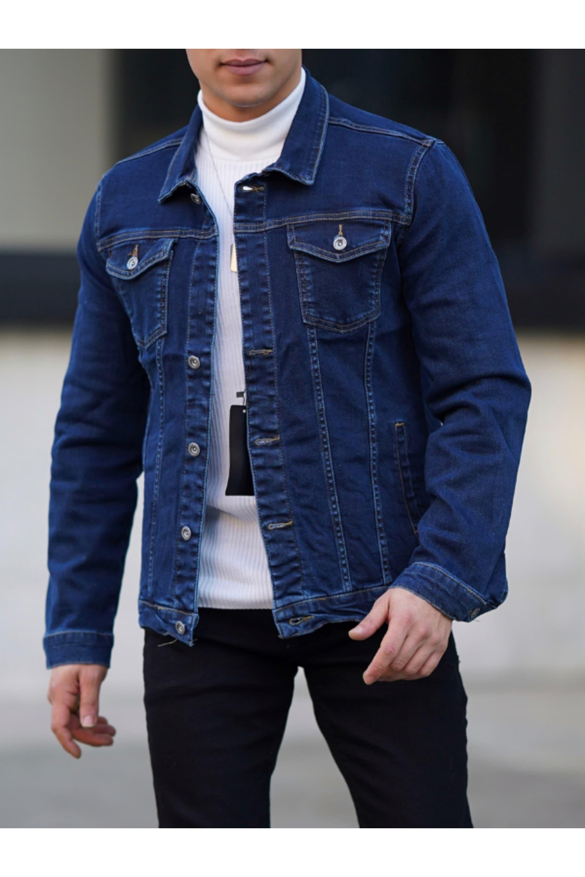 Denım Kot Ceket - Lacivert Slim Fit Erkek Denım Kot Ceket Denım Kot Ceket - Lacivert Slim Fit Erkek Denım Kot Ceket CSLST-ERKCKT005 4XL
