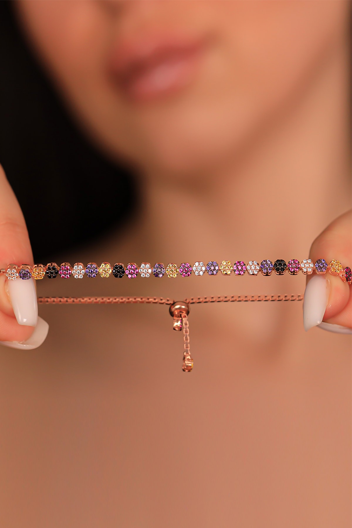 925 Ayar Gümüş Rose Renk Asansörlü Papatya Bileklik 925 Ayar Gümüş Rose Renk Asansörlü Papatya Bileklik RVZ-1427 تک سایز