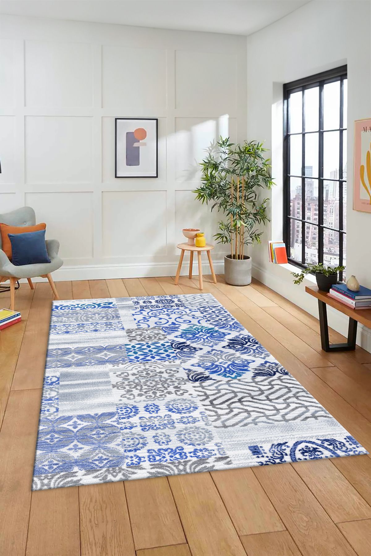 Else Mavi Gri Motif Desenli Dokuma Çift Taraflı Yıkanabilir Saçaklı Kilim Else Mavi Gri Motif Desenli Dokuma Çift Taraflı Yıkanabilir Saçaklı Kilim elsedekorciftbas1001 150 x 230