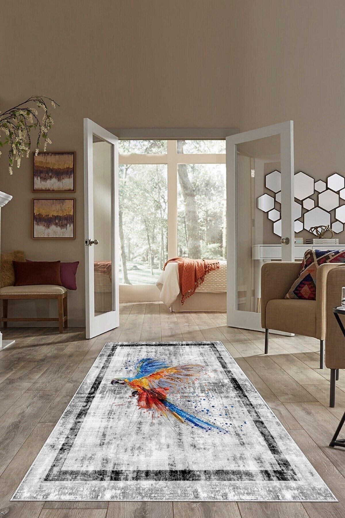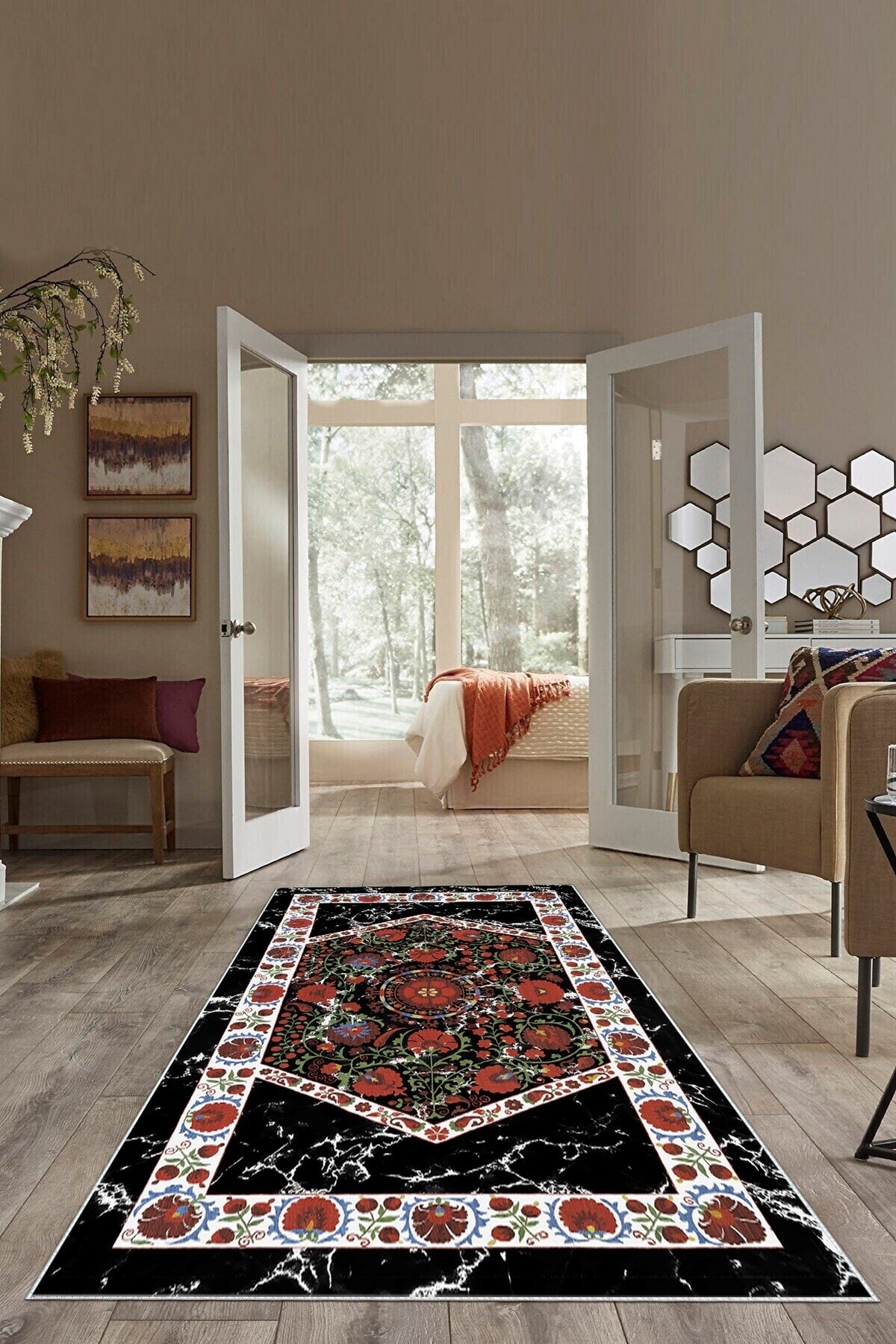 Kahverengi Zemin Göbekli Desen Yıkanabilir Kaymaz Taban Leke Tutmaz Modern Salon Halısı Ve Yolluk Kahverengi Zemin Göbekli Desen Yıkanabilir Kaymaz Taban Leke Tutmaz Modern Salon Halısı Ve Yolluk MRTMOD13 160 x 230