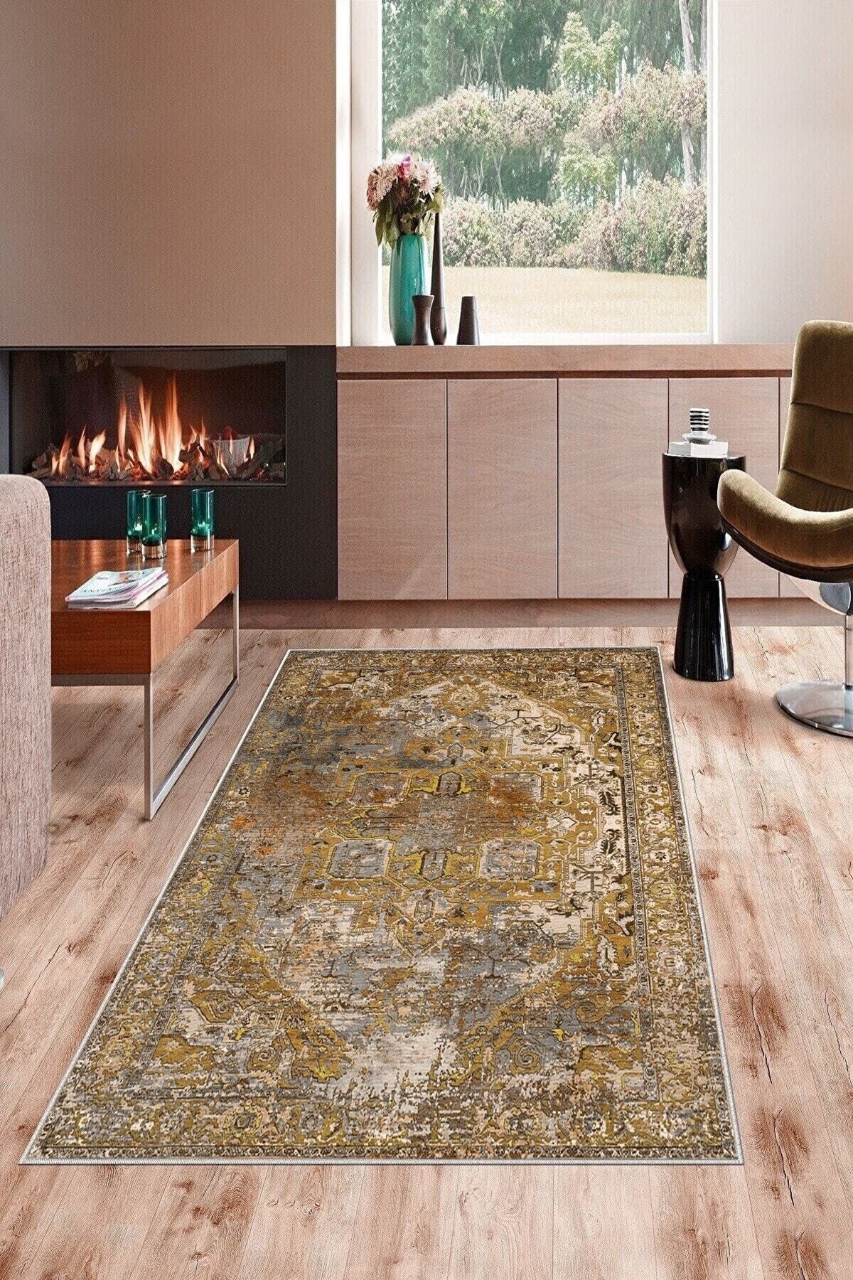 Kahverengi Vintage Desen Çerçeveli Yıkanabilir Kaymaz Taban Leke Tutmaz Modern Salon Halı Ve Yolluk Kahverengi Vintage Desen Çerçeveli Yıkanabilir Kaymaz Taban Leke Tutmaz Modern Salon Halı Ve Yolluk MRTMOD8 160 x 230