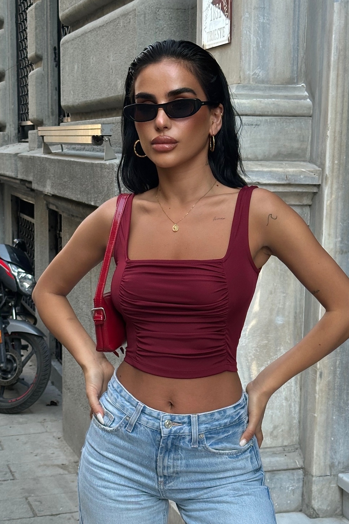 Kadın Siyah Kayık Yaka Önü Büzgülü Crop Örme Bluz BLZ-19001884 Kadın Siyah Kayık Yaka Önü Büzgülü Crop Örme Bluz BLZ-19001884 M