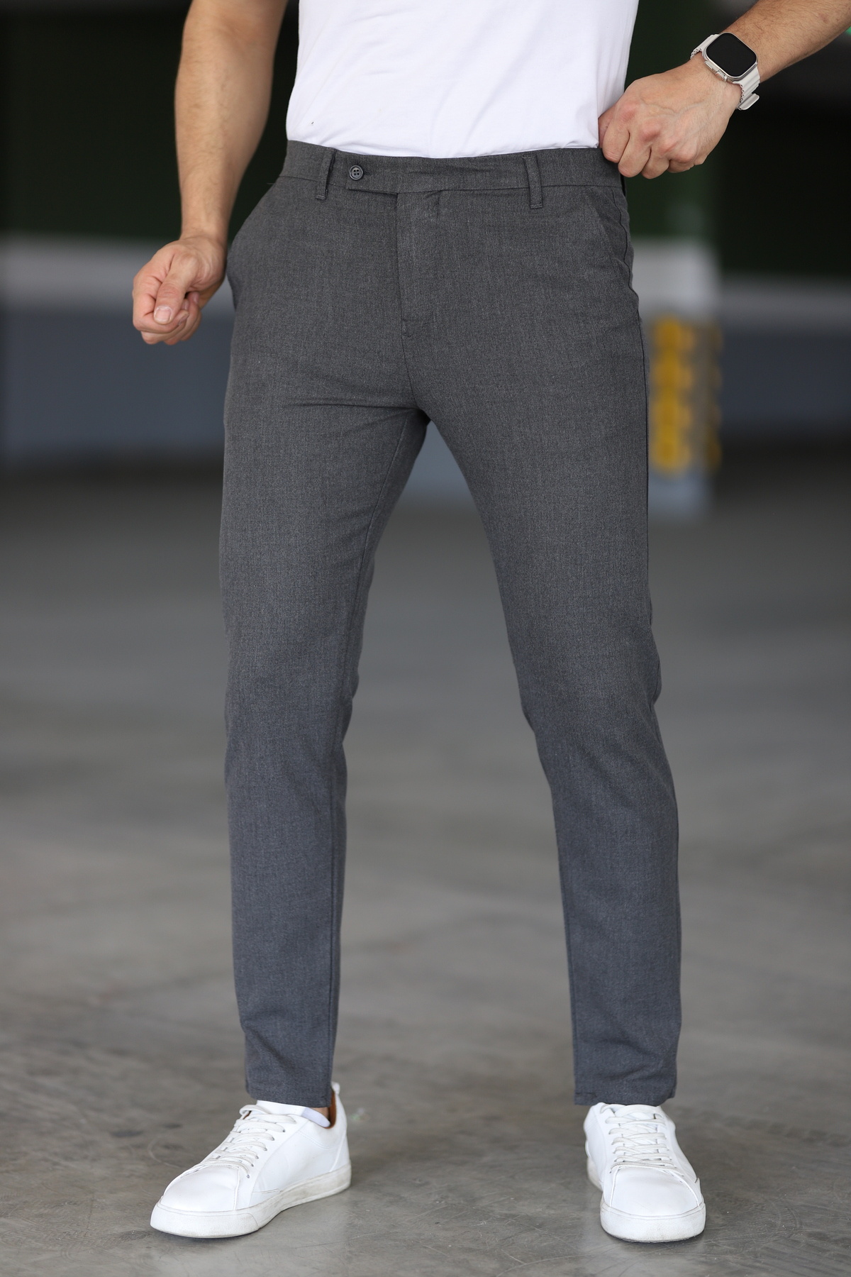 Erkek Slim Fit Koyu Gri Keten Pantolon Erkek Slim Fit Koyu Gri Keten Pantolon SJ-157 38