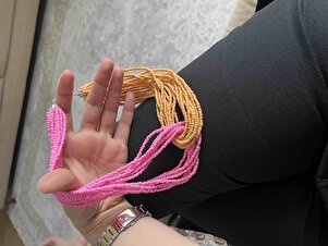 Pembe Kum Boncuk Çoklu Tasarım Kolye Pembe Kum Boncuk Çoklu Tasarım Kolye IPK-087 تک سایز
